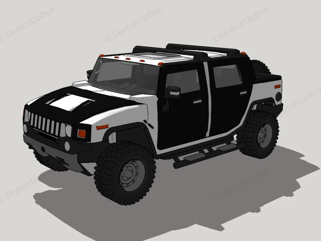 Hummer H2 SUT Transportation 911Hummer H2 SUT pickup truck sketchup 3d model.DownloadEdges:94292Faces:46238File Version:SketchUp 8.skp File Size:4.42 MBTag Count:1Materials:32Render:NoneCarsHummerPickup