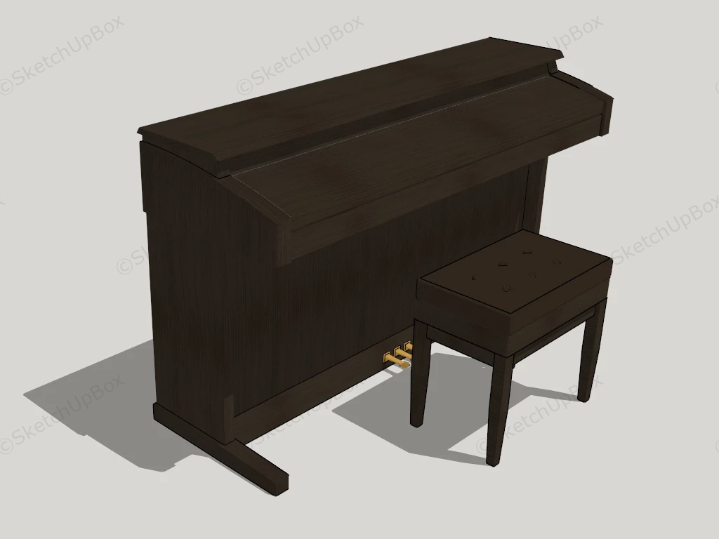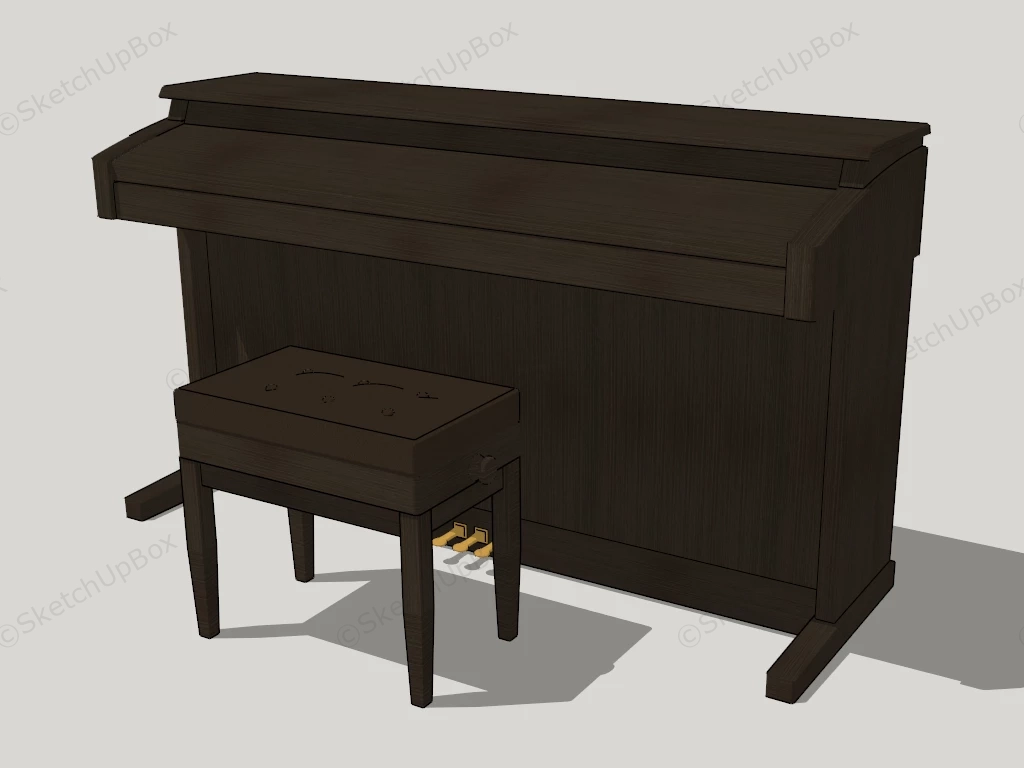 Upright Piano And Bench Musical Instruments 669Upright piano and bench sketchup 3d model.DownloadEdges:23197Faces:11905File Version:SketchUp 8.skp File Size:5.94 MBTag Count:1Materials:4Render:NonePiano
