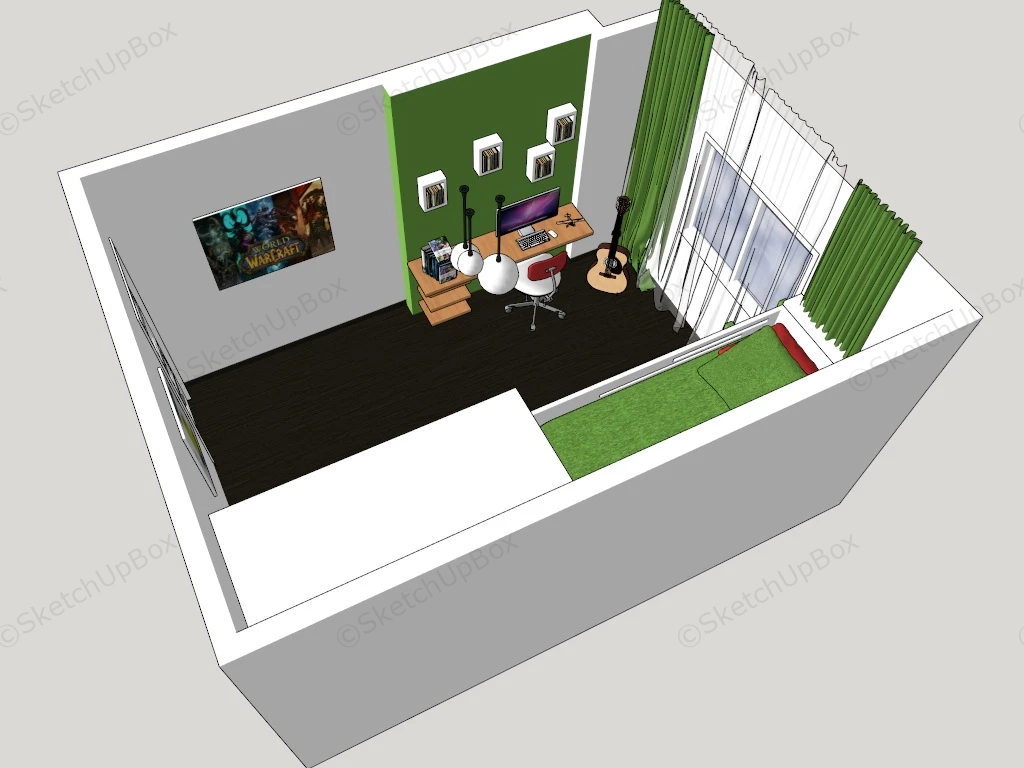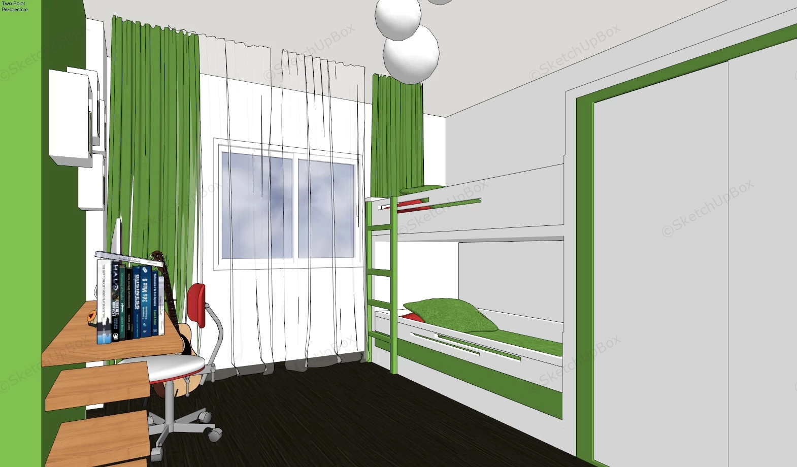 Green And White Kids Room With Bunk Bed Bedroom 1.08kGreen and white kids bedroom with bunk bed and desk sketchup 3d model.DownloadEdges:289852Faces:154594File Version:SketchUp 8.skp File Size:28.8 MBTag Count:5Materials:85Render:NoneKids Room