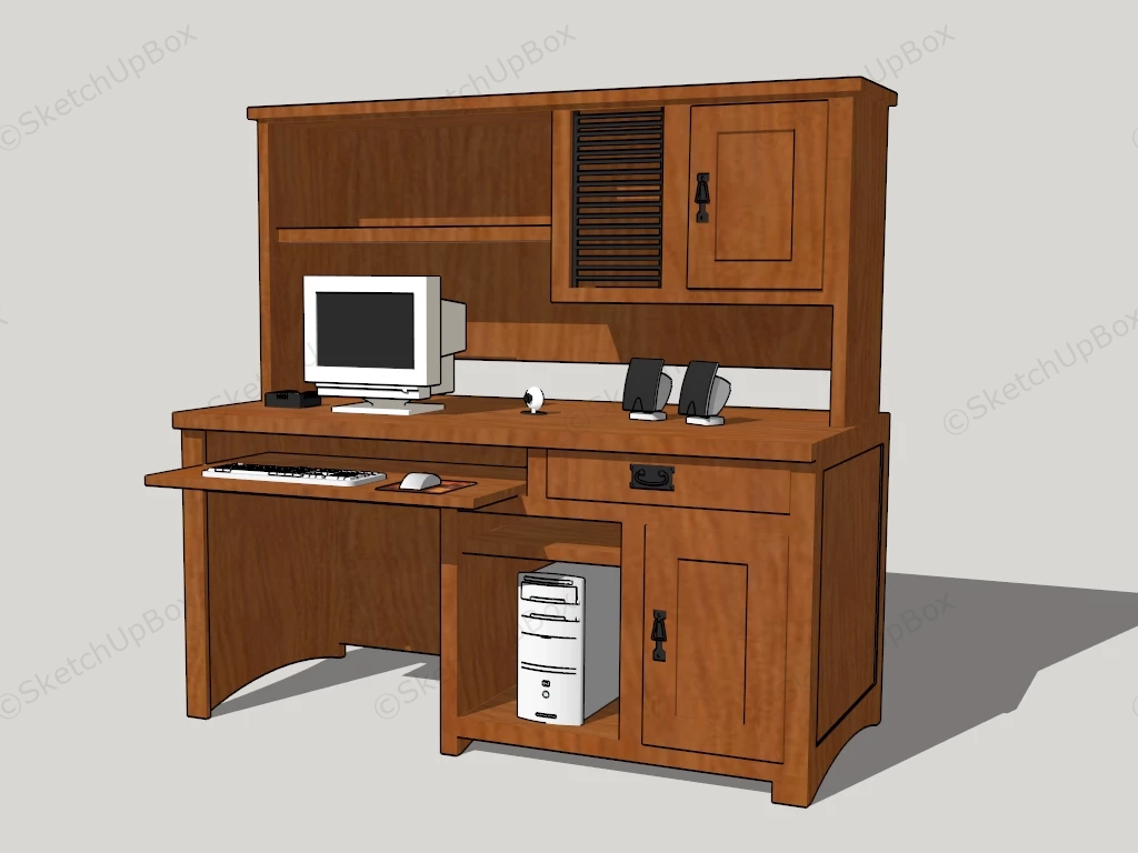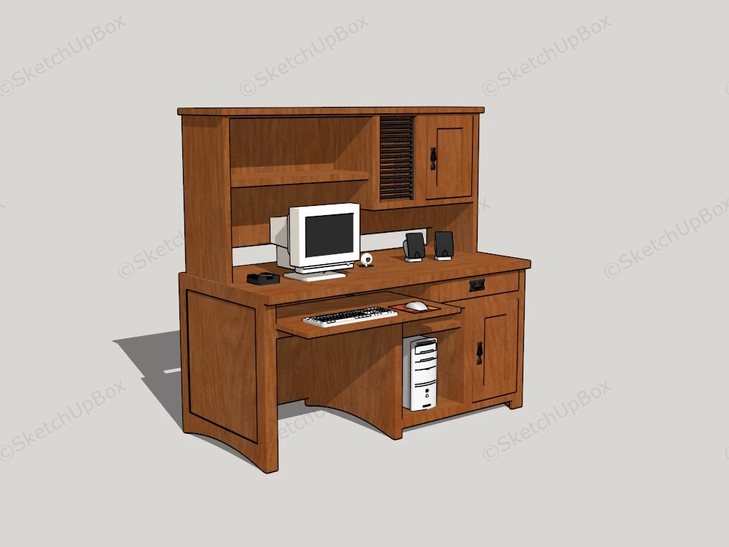 Computer Desk With Hutch Office Furniture 1.01kComputer desk with hutch and keyboard tray sketchup 3d model.DownloadEdges:8368Faces:3219File Version:SketchUp 8.skp File Size:992 KBTag Count:1Materials:8Render:NoneDesks