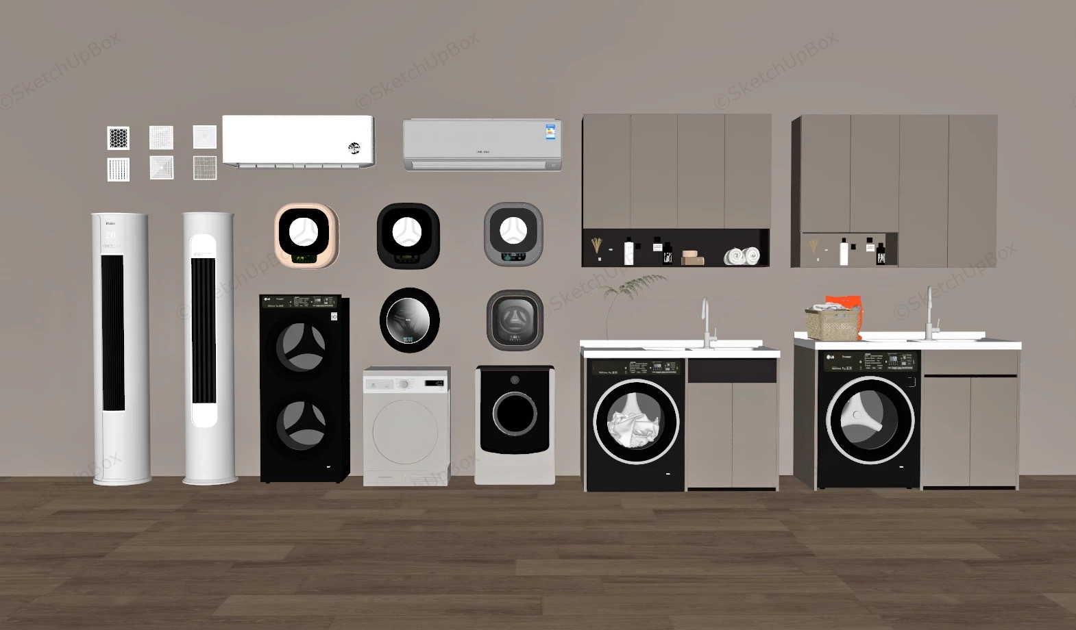 Collection Of Home Appliances Electronics 1.13kCollection of home appliances washing machines and air conditioners sketchup 3d model.VIP onlyOnly VIP downloadUpgrade VIPBuy nowEdges:3948060Faces:2611064File Version:SketchUp 8.skp File Size:441 MBTag Count:1Materials:150Render:NoneAir ConditionerHome AppliancesWasher