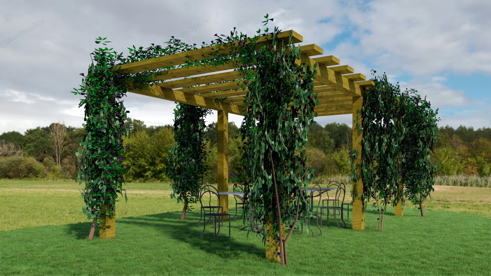 Grape Vine Pergola With Furniture Garden Design 1.45kGrape vine pergola with furniture sketchup 3d model.DownloadEdges:1198811Faces:337831File Version:SketchUp 8.skp File Size:4.19 MBTag Count:1Materials:16Render:NonePergolas