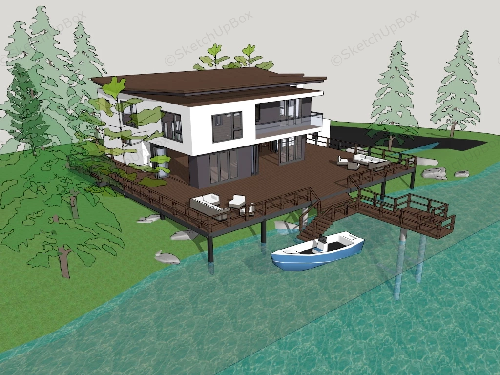 Lake Waterfront Home Residential Buildings 1.33kLake waterfront house sketchup 3d model.DownloadEdges:47269Faces:19436File Version:SketchUp 8.skp File Size:4.28 MBTag Count:14Materials:29Render:NoneHouses