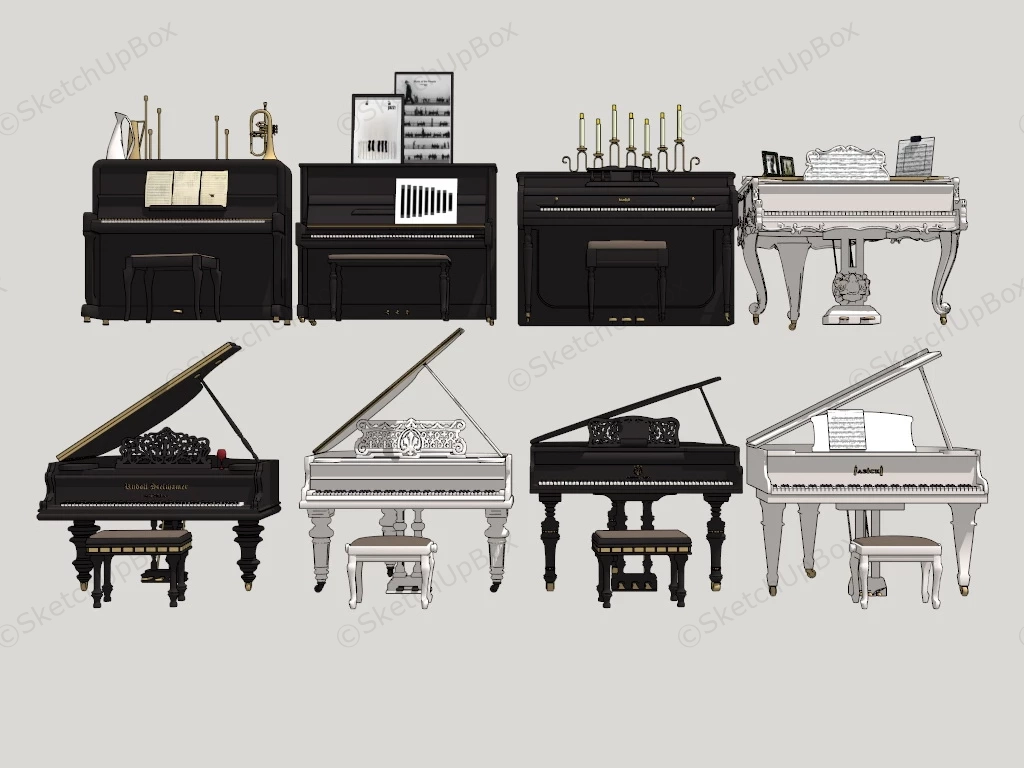 Piano Collection Musical Instruments 572Collection of upright and grand piano sketchup 3d model.VIP onlyOnly VIP downloadUpgrade VIPBuy nowEdges:571657Faces:380681File Version:SketchUp 8.skp File Size:133 MBTag Count:1Materials:40Render:NonePiano