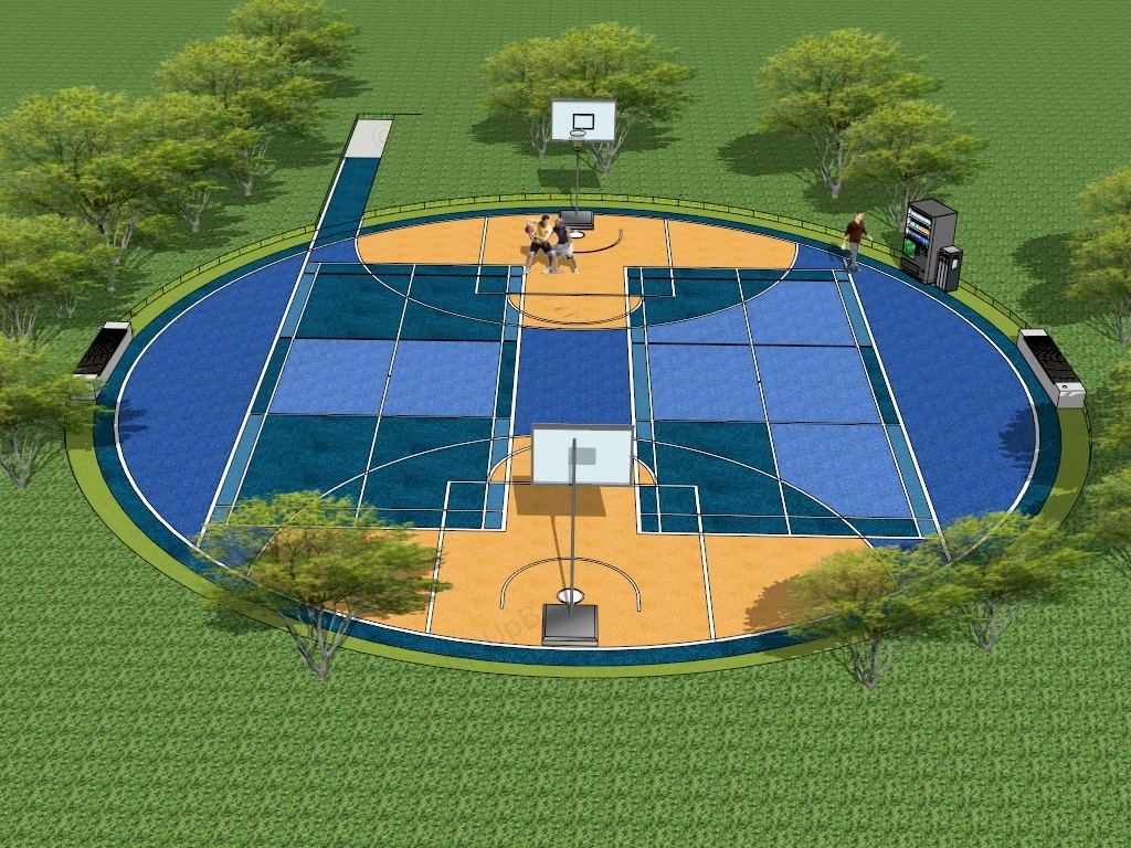 Outdoor Round Basketball Court Sports Venue 1.44kOutdoor round basketball court sketchup 3d model.DownloadEdges:76747Faces:17449File Version:SketchUp 8.skp File Size:10.6 MBTag Count:18Materials:46Render:NoneSports Field