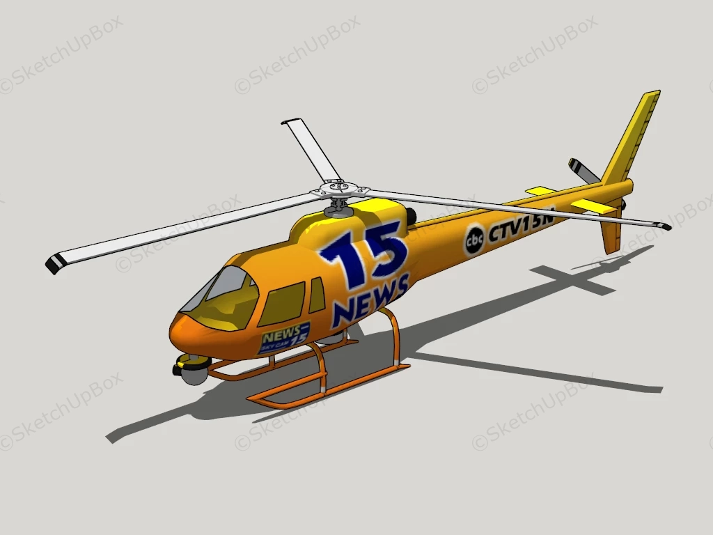 CTV News Helicopter Transportation 259CTV News helicopter sketchup 3d model.DownloadEdges:6414Faces:3685File Version:SketchUp 8.skp File Size:1.79 MBTag Count:1Materials:8Render:NoneAircraftHelicopters