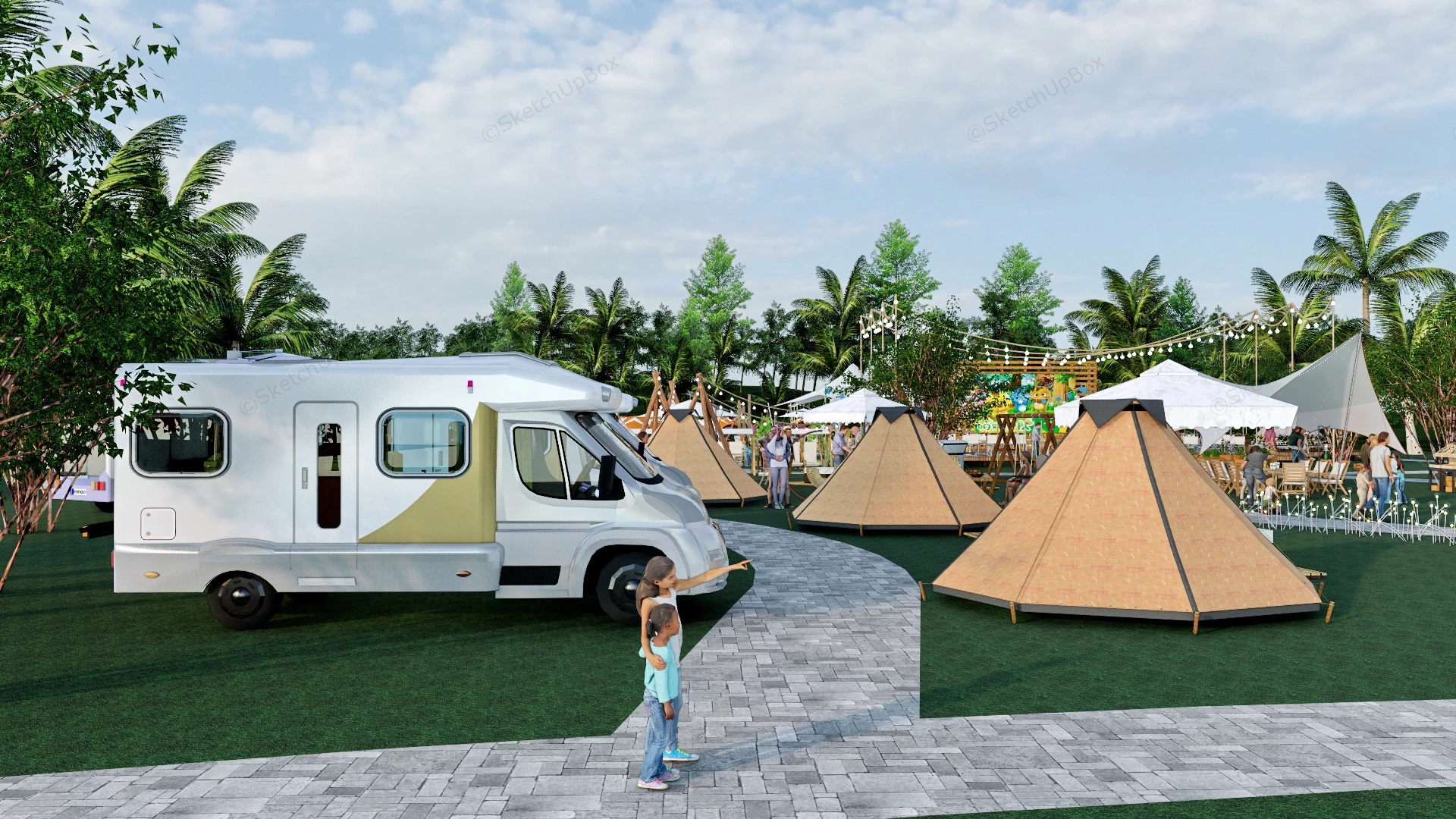 Caravan & Camping Park Camping 1.06kCampervan and camping park sketchup 3d model.VIP onlyOnly VIP downloadUpgrade VIPBuy nowEdges:23492478Faces:11989054File Version:SketchUp 8.skp File Size:229 MBTag Count:120Materials:640Render:NoneCampervanCampsite