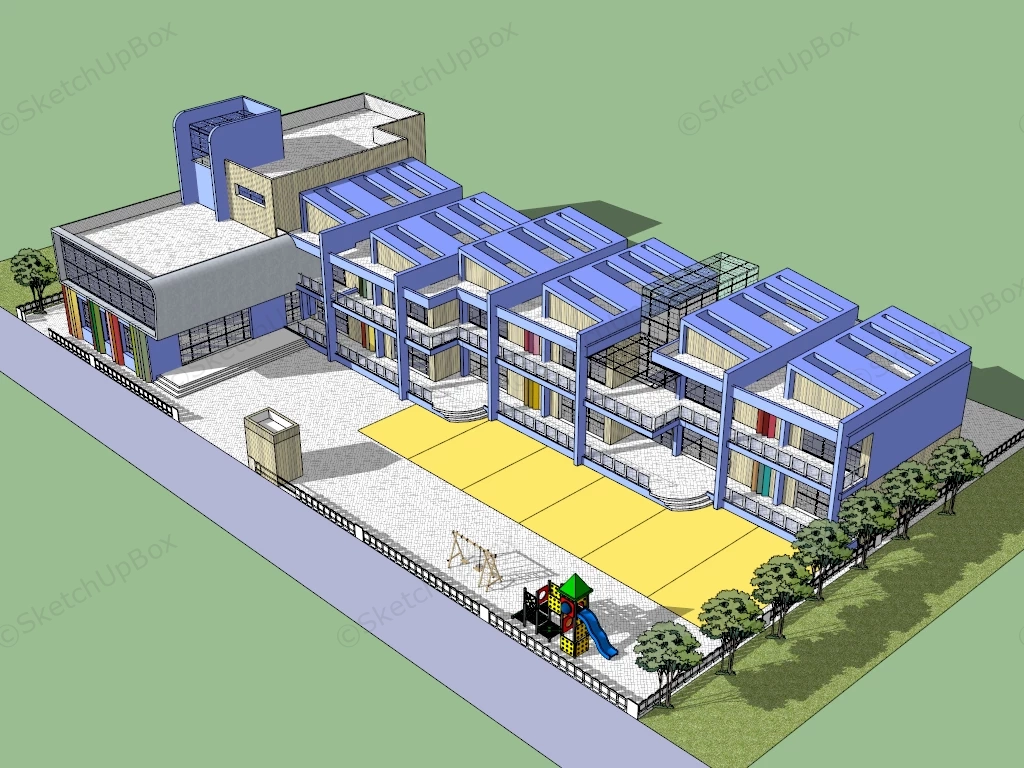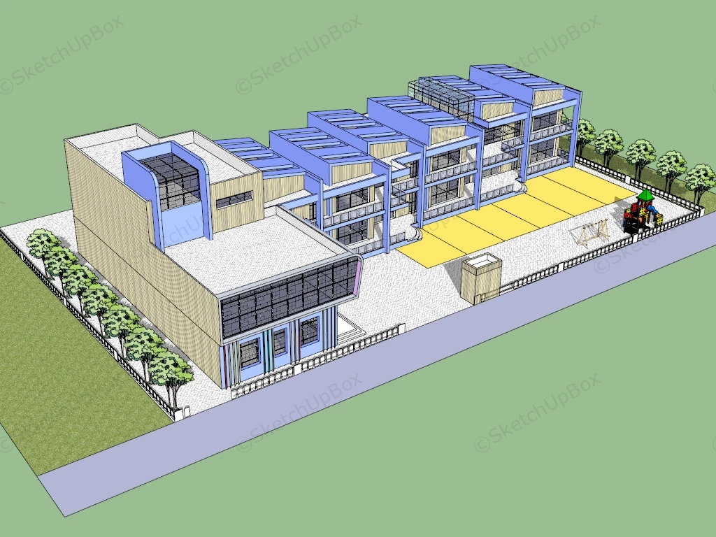 Kindergarten Architecture Design Institutional Buildings 830Modern kindergarten architecture design sketchup 3d model.DownloadEdges:169928Faces:43266File Version:SketchUp 8.skp File Size:3.75 MBTag Count:5Materials:79Render:NonePreschools