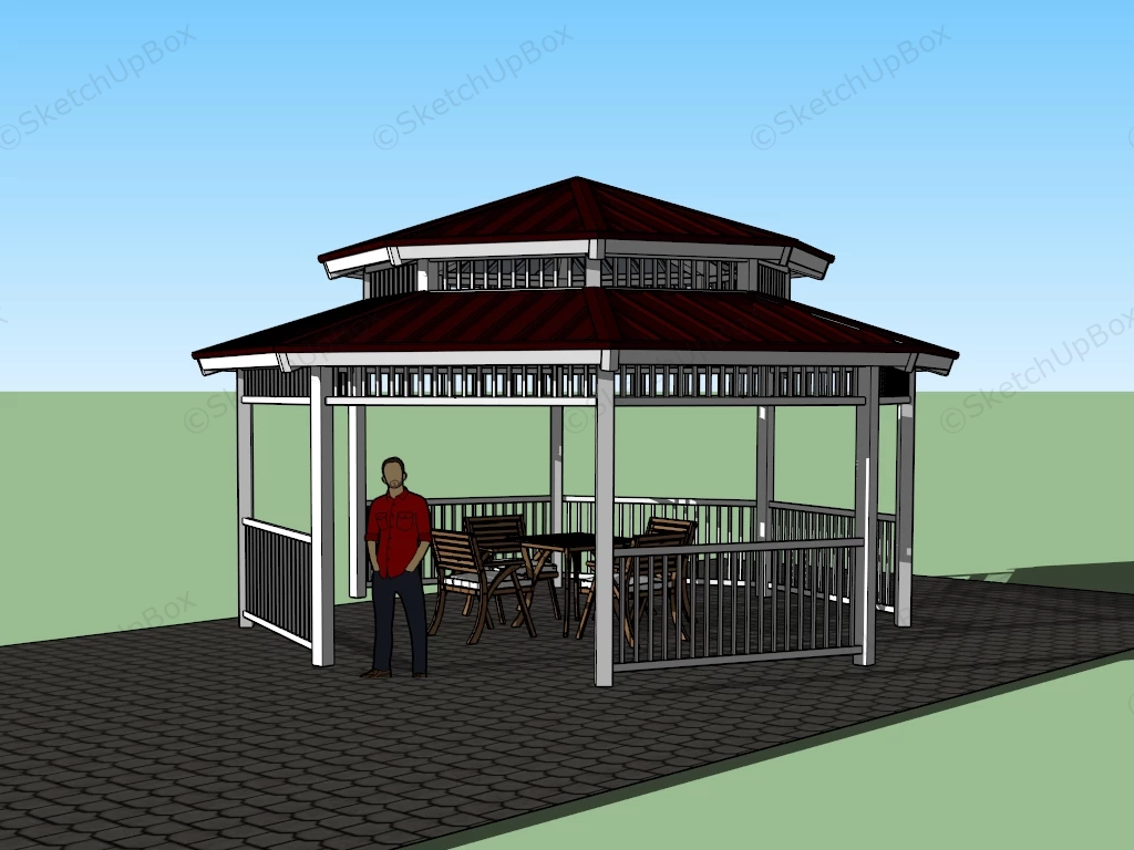 Double Roof Gazebo Architectural Elements 744Double roof gazebo sketchup 3d model.DownloadEdges:47650Faces:21941File Version:SketchUp 8.skp File Size:11.6 MBTag Count:4Materials:15Render:NoneGazebos