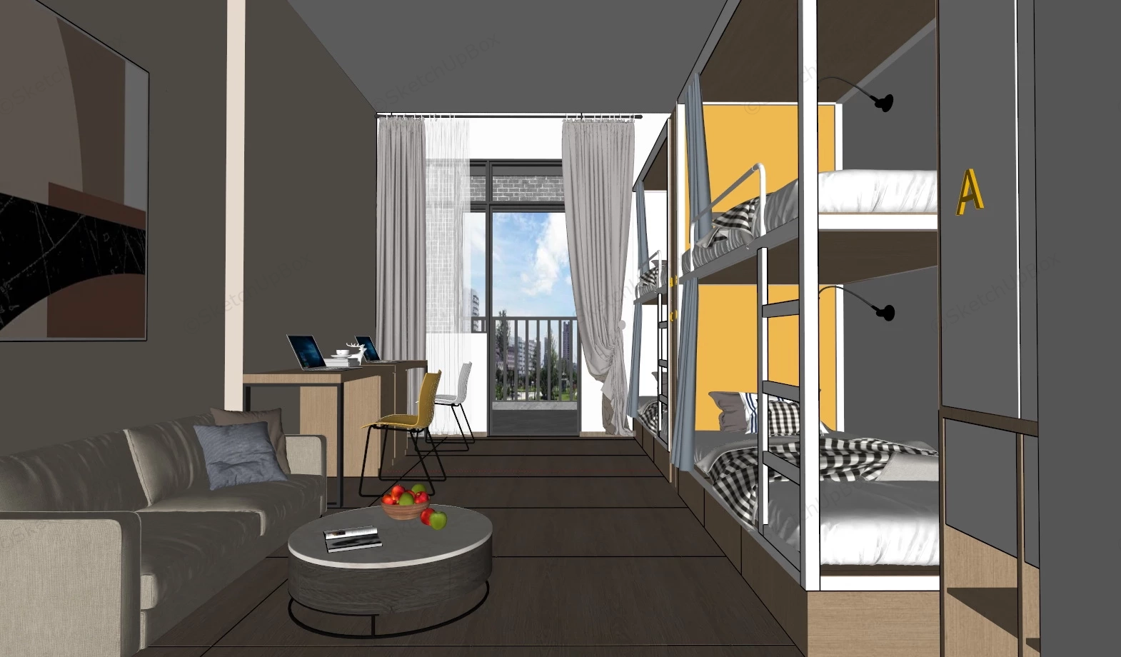 4 Bed Dormitory Room Design Interior Design 7884-Bed dormitory room interior design sketchup 3d model.VIP onlyOnly VIP downloadUpgrade VIPBuy nowEdges:2176444Faces:1443261File Version:SketchUp 8.skp File Size:279 MBTag Count:1Materials:70Render:EnscapeDormitory