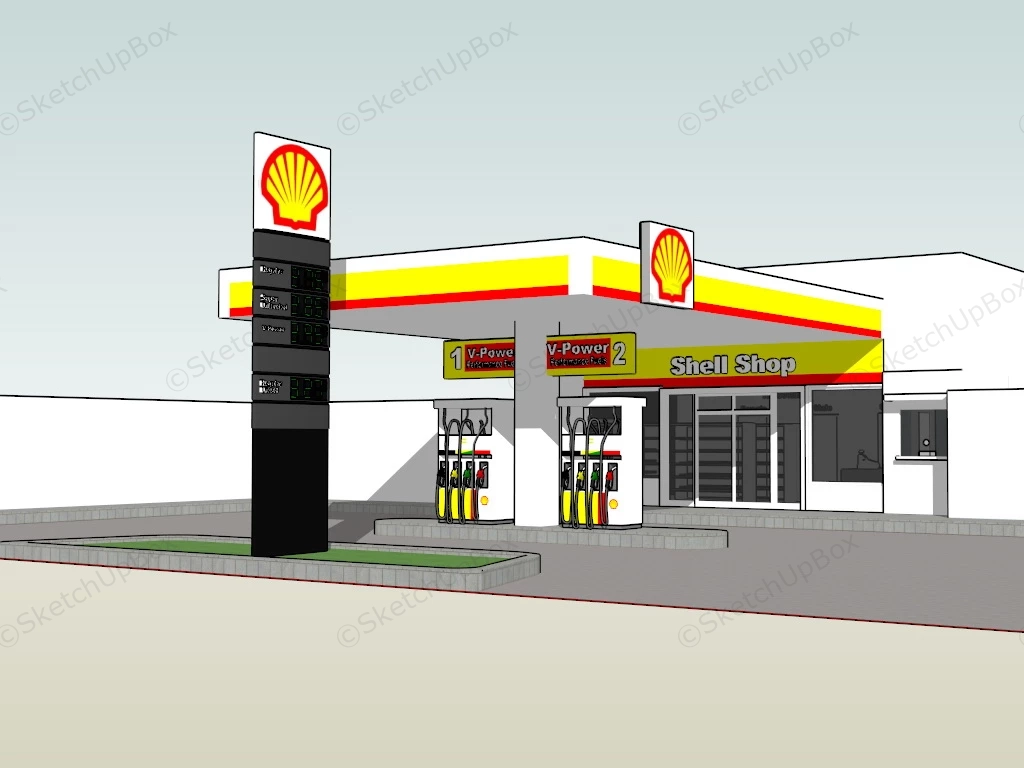 Shell Fuel Station Commercial Buildings 1.44kShell gas station sketchup 3d model.DownloadEdges:107280Faces:46597File Version:SketchUp 8.skp File Size:4.32 MBTag Count:4Materials:35Render:NoneGas Station