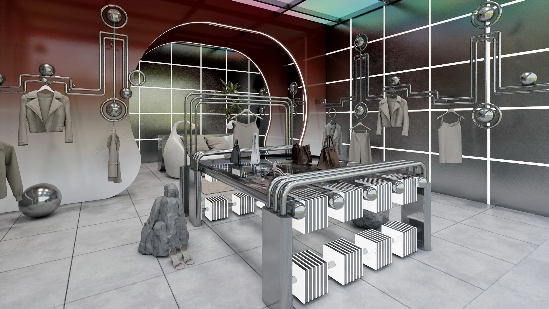 Fashion Retail Women's Clothing Store Commercial Space 1.44kModern industrial women's clothing store interior design idea sketchup 3d model.VIP onlyOnly VIP downloadUpgrade VIPBuy nowEdges:4099544Faces:2715014File Version:SketchUp 8.skp File Size:479 MBTag Count:1Materials:70Render:EnscapeClothing StoresRetail Store