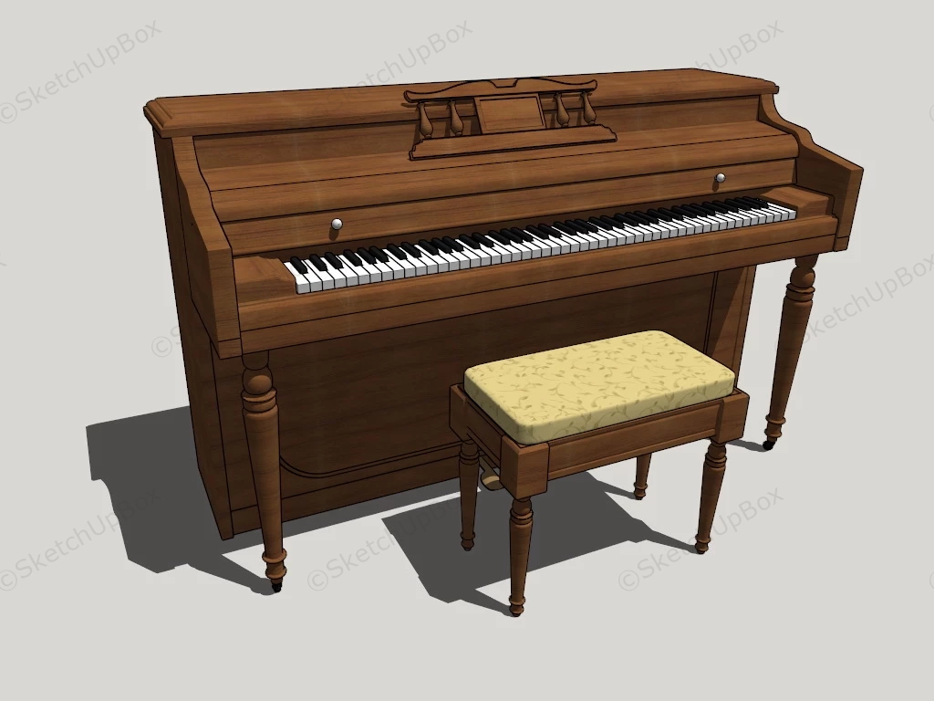 Acoustic Upright Piano Musical Instruments 1kAcoustic upright piano sketchup 3d model.DownloadEdges:60390Faces:29375File Version:SketchUp 8.skp File Size:2.68 MBTag Count:1Materials:5Render:NonePiano