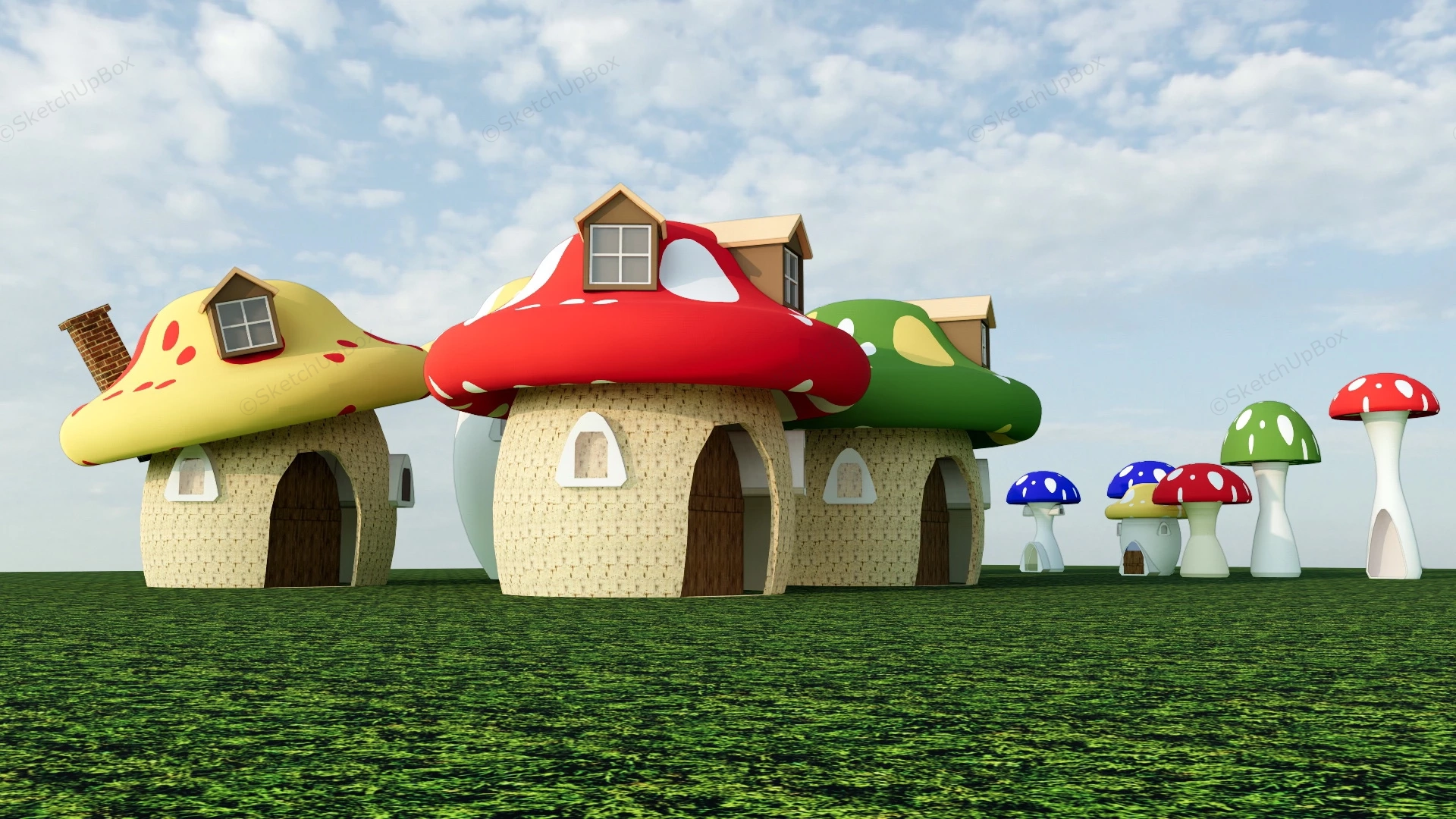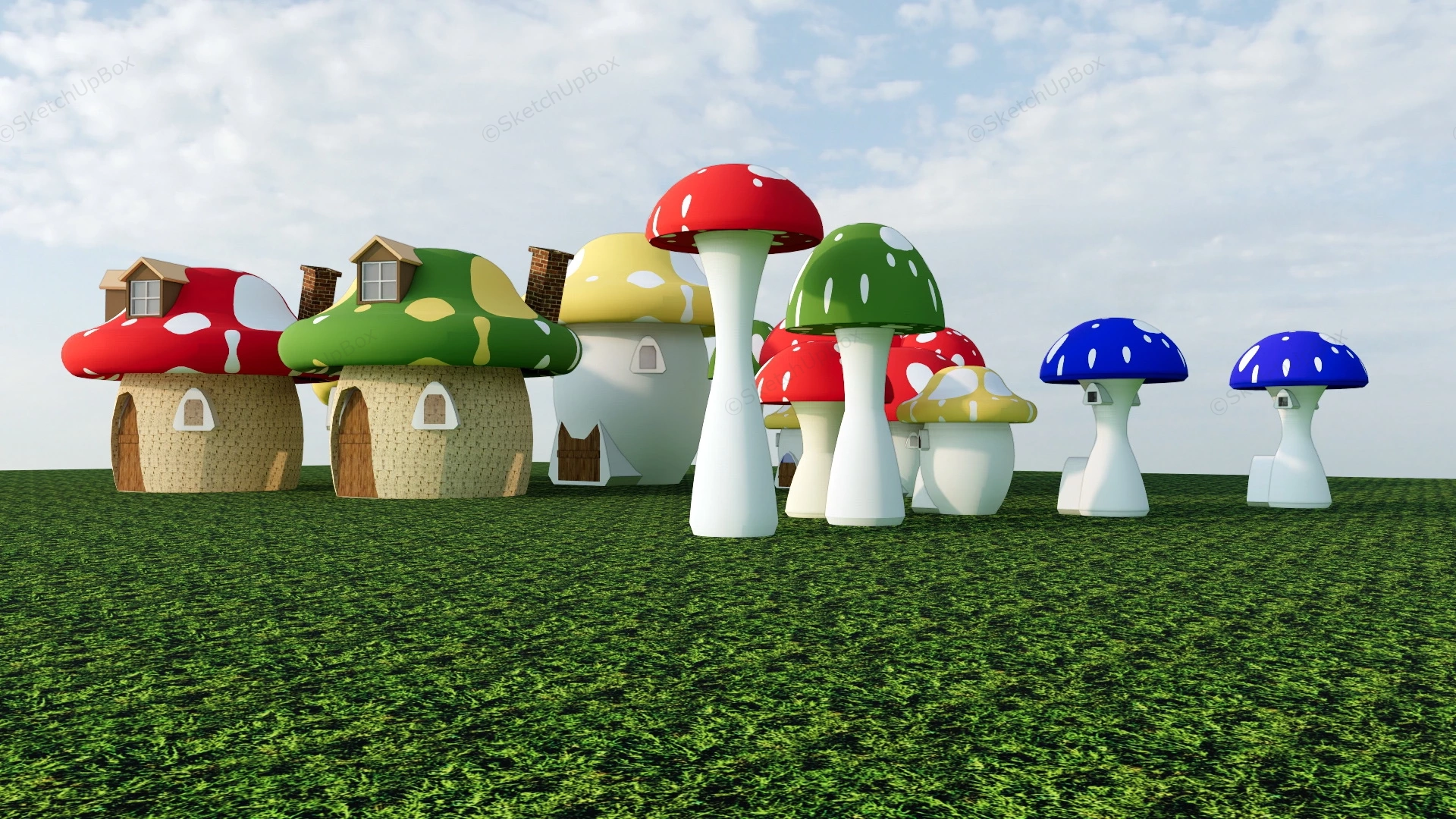 Giant Mushroom House Playground Playground 1.14kMushroom house playground for kids sketchup 3d model.VIP onlyOnly VIP downloadUpgrade VIPBuy nowEdges:88506Faces:33722File Version:SketchUp 8.skp File Size:4.2 MBTag Count:1Materials:29Render:NoneKids Playground