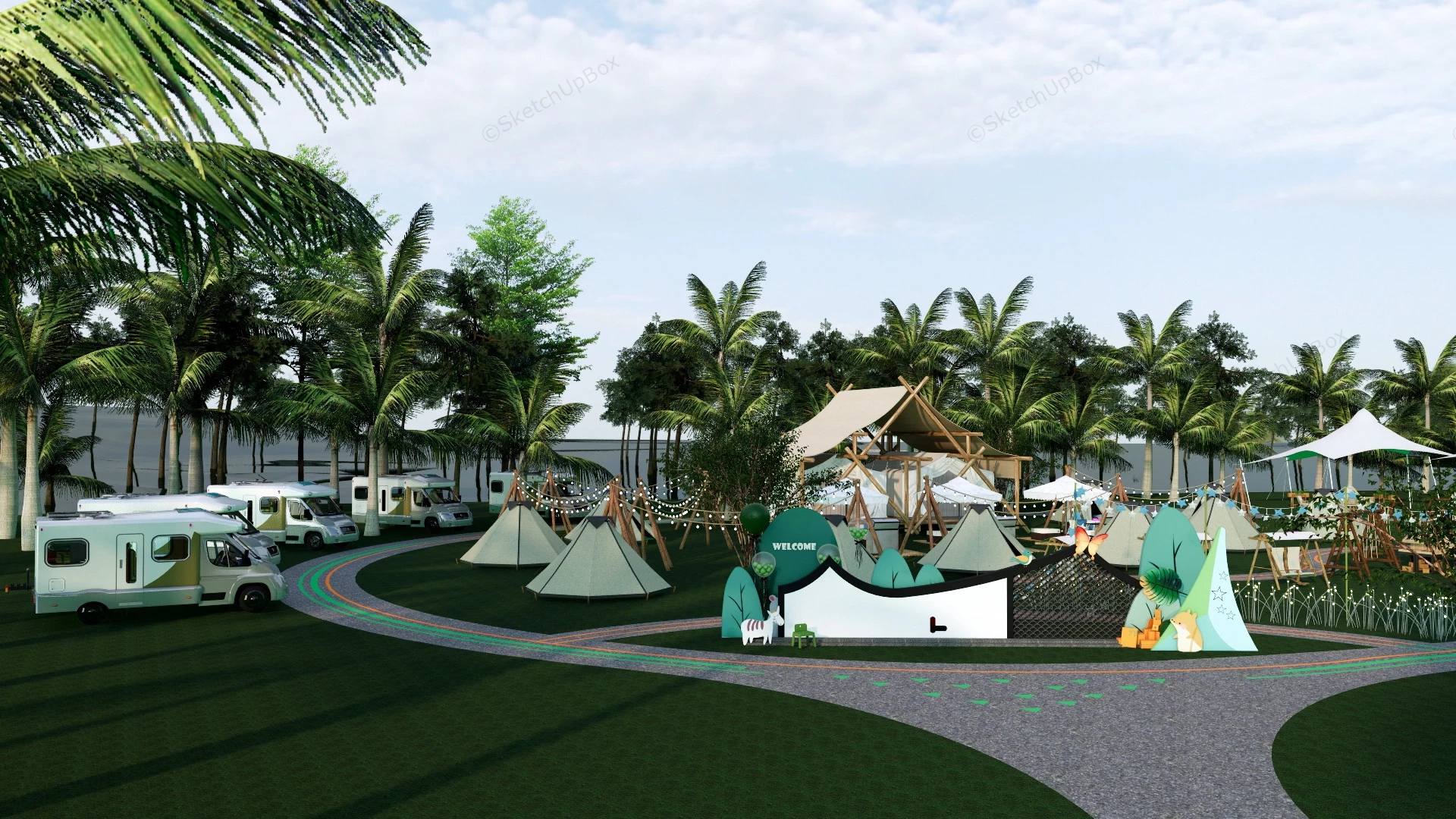 Camping Party & Campsite Ideas Camping 1.08kLarge camping party & campsite ideas sketchup 3d model, RV park and campground.VIP onlyOnly VIP downloadUpgrade VIPBuy nowEdges:29050714Faces:14822746File Version:SketchUp 8.skp File Size:238 MBTag Count:15Materials:538Render:NoneCampervanCampgroundCampsiteTent