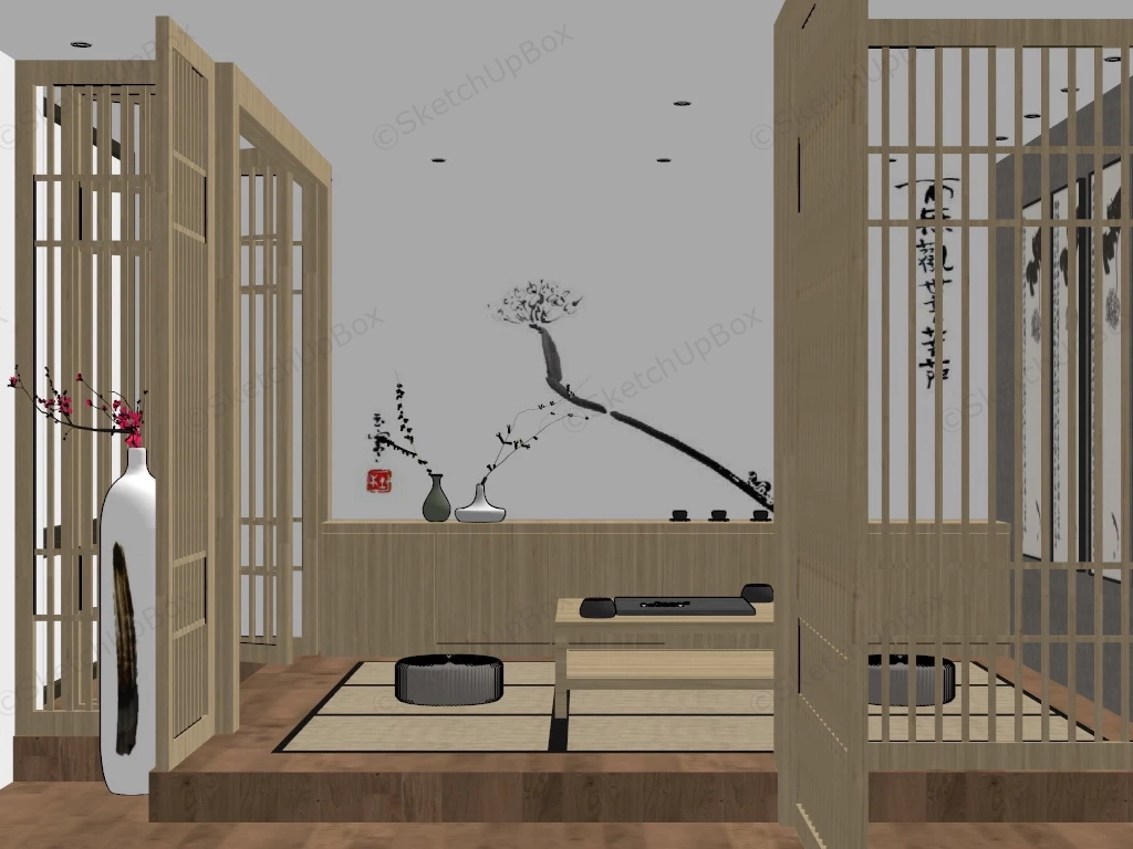 Japanese Tea House Interior Interior Design 1.03kJapanese style tea house interior design sketchup 3d model.DownloadEdges:258817Faces:167674File Version:SketchUp 8.skp File Size:46.3 MBTag Count:1Materials:32Render:NoneTeahouse