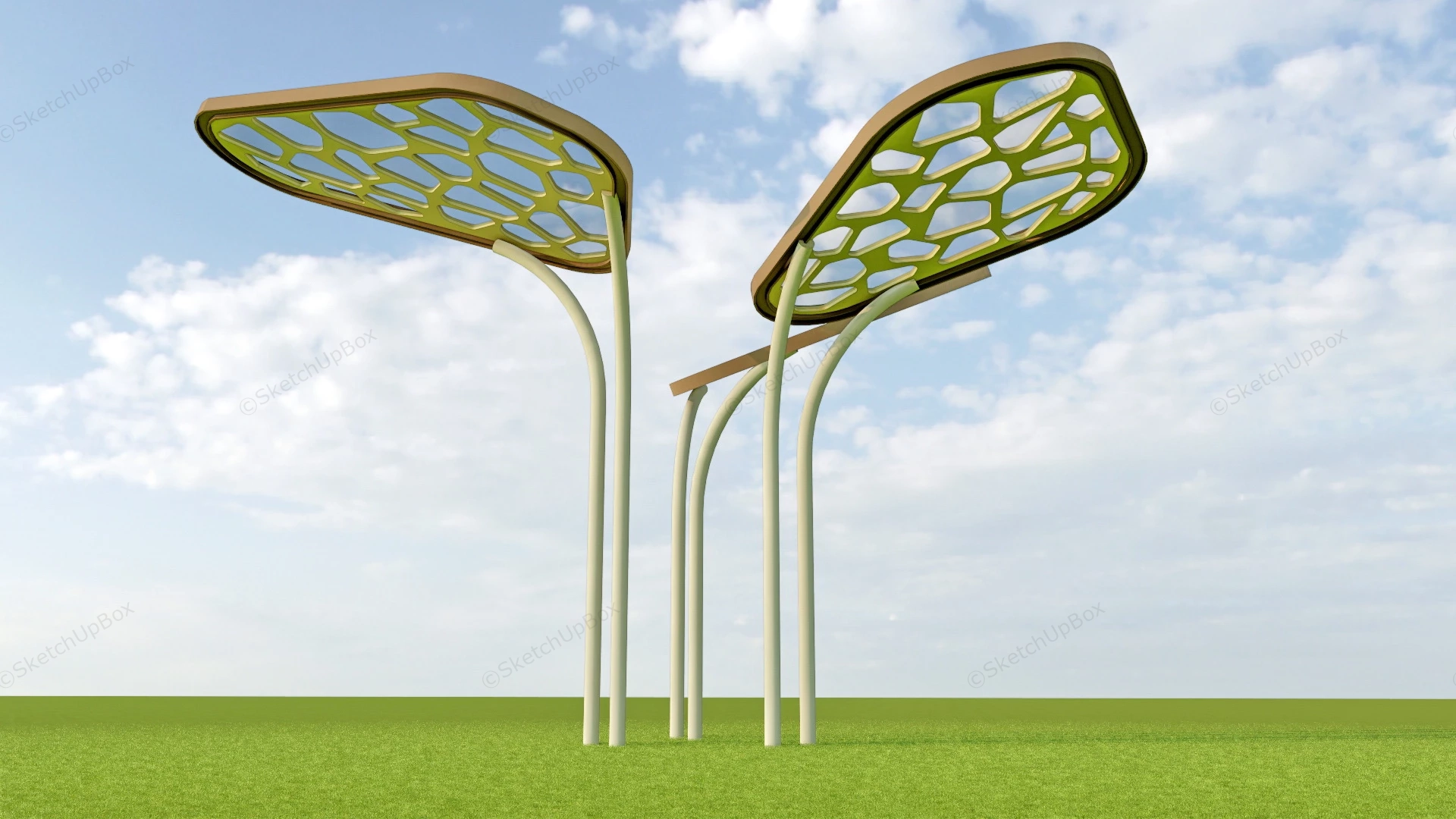 Public Space Canopy Architectural Elements 1.12kClover shaped canopy for park and public space sketchup 3d model.DownloadEdges:25259Faces:7818File Version:SketchUp 8.skp File Size:2.22 MBTag Count:1Materials:7Render:NoneCanopyLandscape Architecture