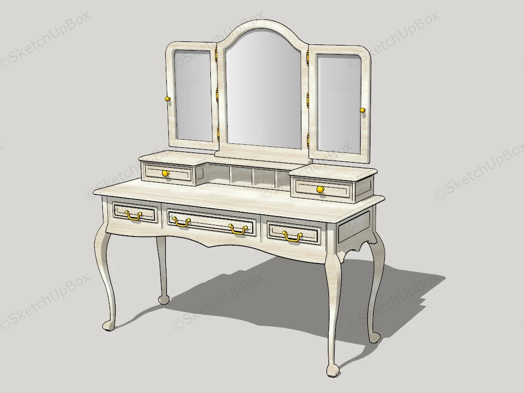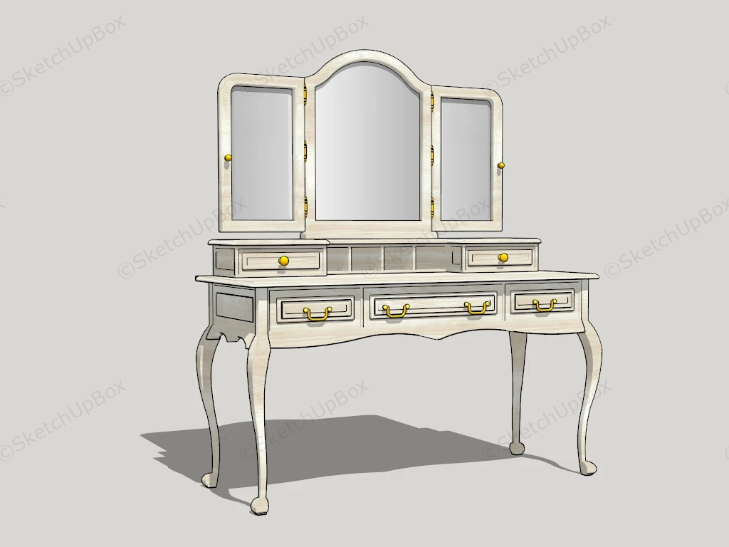 Vintage Makeup Vanity With Mirror Furniture 641Old antique makeup vanity with mirror sketchup 3d model.DownloadEdges:45697Faces:20944File Version:SketchUp 8.skp File Size:2.47 MBTag Count:1Materials:6Render:NoneMakeup Vanity