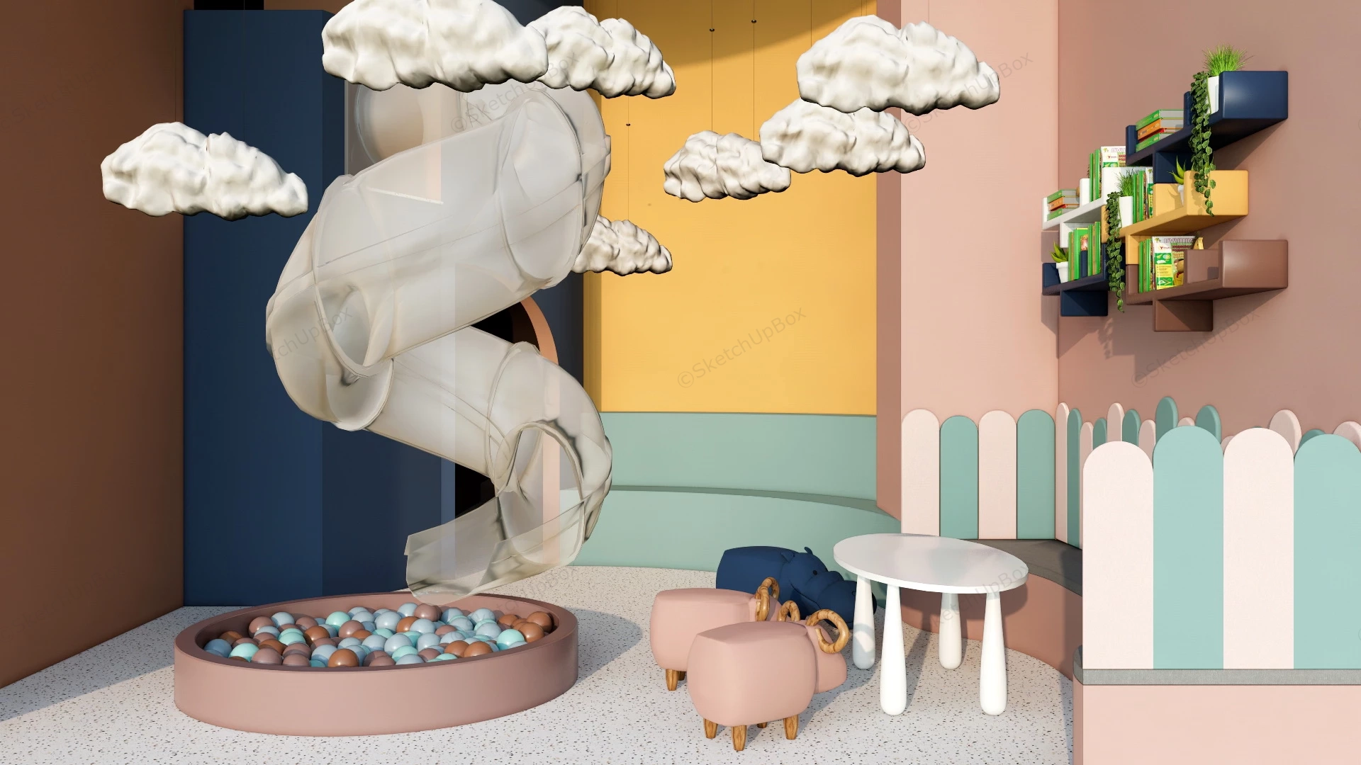 Indoor Playground Slide Playground 1.59kCute indoor playground slide idea sketchup 3d model.DownloadEdges:877163Faces:501713File Version:SketchUp 8.skp File Size:46.8 MBTag Count:1Materials:47Render:NoneIndoor PlaygroundPlayground Slides