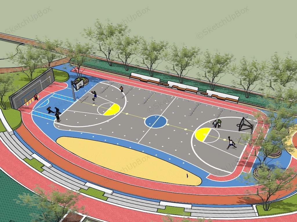 Community Park Basketball Court Sports Venue 2.06kBasketball court in a community park sketchup 3d model.DownloadEdges:325559Faces:82700File Version:SketchUp 8.skp File Size:23.8 MBTag Count:2Materials:102Render:NoneSports Field
