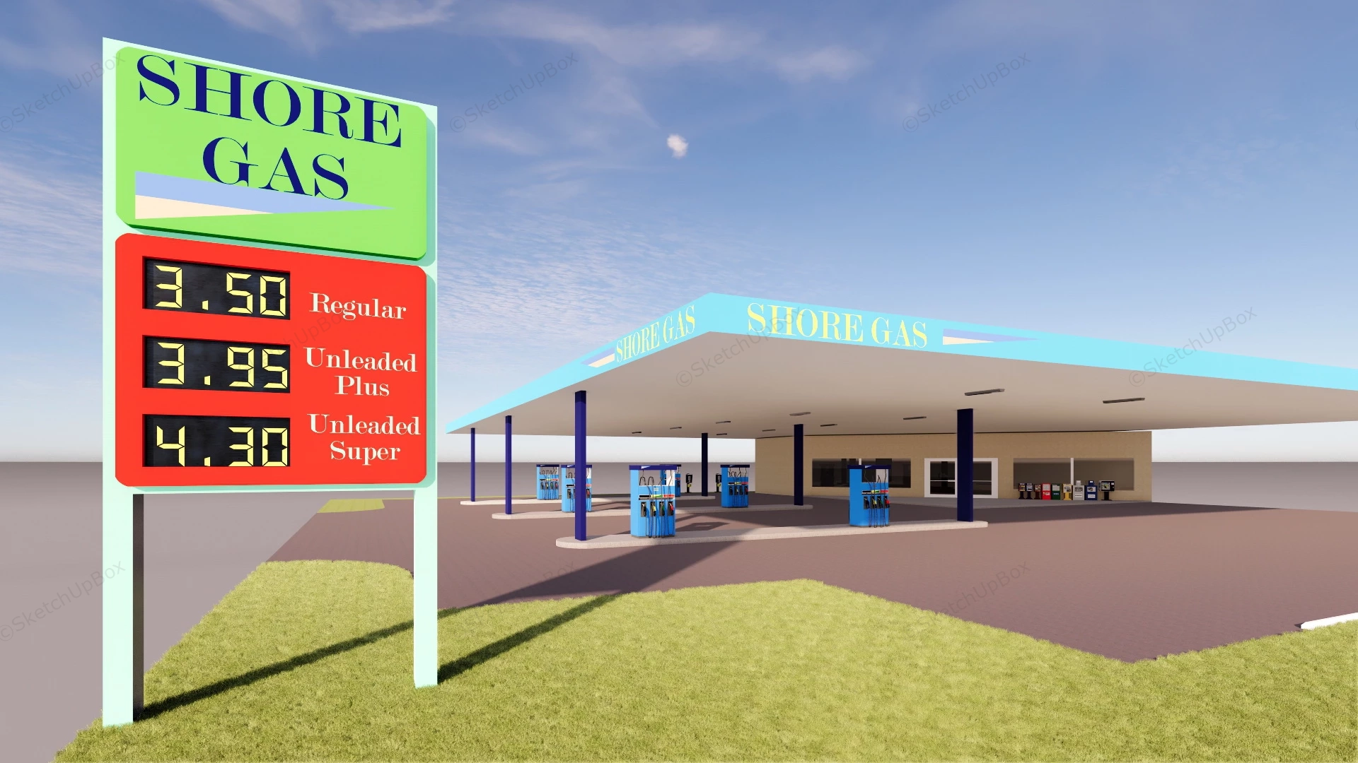 North Shore Gas Station Commercial Buildings 1.07kNorth Shore gas station sketchup 3d model.DownloadEdges:256496Faces:115939File Version:SketchUp 8.skp File Size:3.99 MBTag Count:1Materials:89Render:NoneGas Station