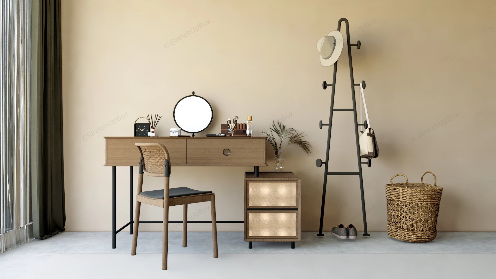 Dressing Table And Coat Stand Furniture 549Modern wood dressing table set and coat stand for bedroom sketchup 3d model.VIP onlyOnly VIP downloadUpgrade VIPBuy nowEdges:1097446Faces:683534File Version:SketchUp 8.skp File Size:210 MBTag Count:1Materials:108Render:NoneBedroom FurnitureDressing Tables