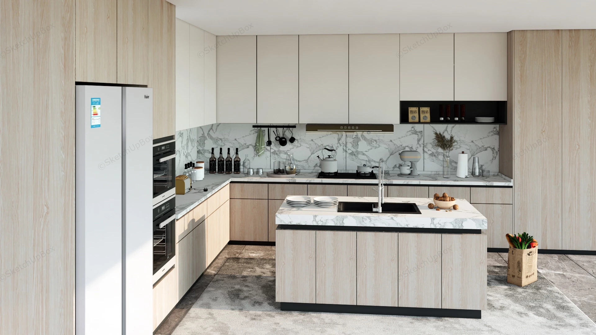 L Shaped Kitchen With Island Kitchen 774Wood and white marble L-shaped kitchen with island design ideas sketchup 3d model.VIP onlyOnly VIP downloadUpgrade VIPBuy nowEdges:1588252Faces:1036541File Version:SketchUp 8.skp File Size:201 MBTag Count:1Materials:121Render:NoneKitchen CabinetsKitchen Island