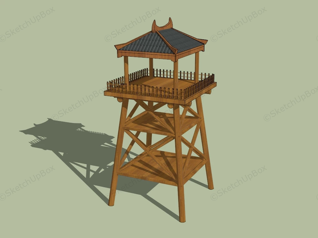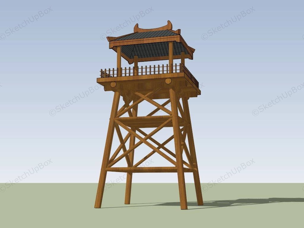 Antique Wooden Watchtower Architecture 1.27kAntique wooden watchtower sketchup 3d model.DownloadEdges:2994Faces:1315File Version:SketchUp 8.skp File Size:1.32 MBTag Count:1Materials:4Render:NoneTowerWatchtower