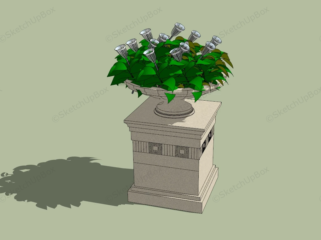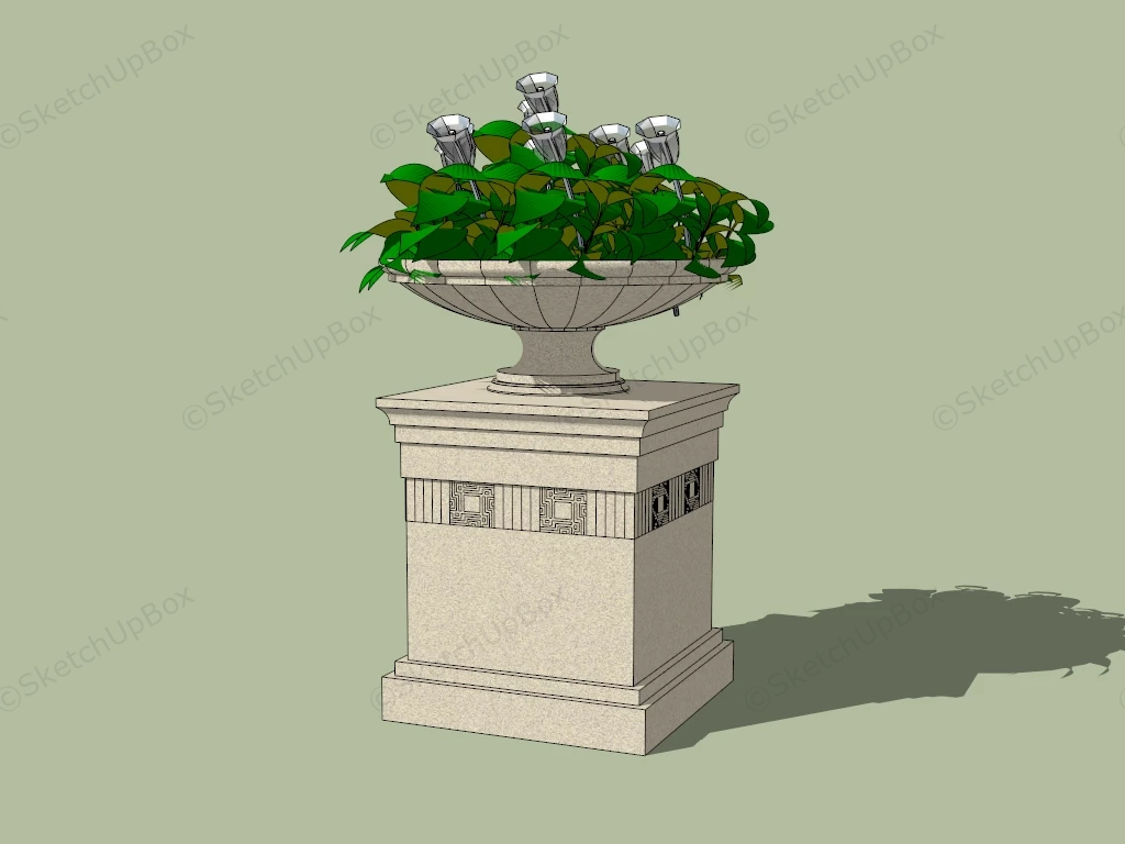Urn Planter On Pedestal Garden Design 1.28kOutdoor urn planter with pedestal sketchup 3d model.DownloadEdges:49324Faces:22326File Version:SketchUp 8.skp File Size:1.12 MBTag Count:5Materials:6Render:NoneFlowerpotsGarden Ornaments