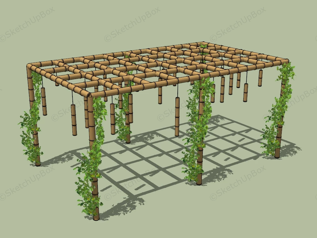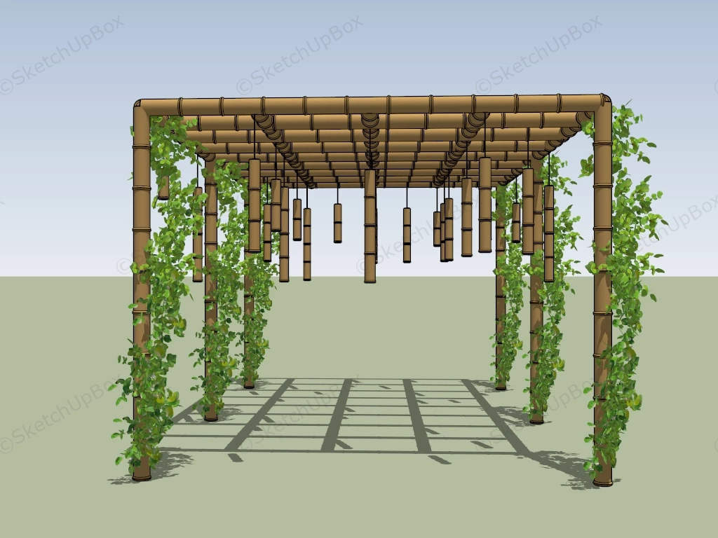Bamboo Pergola With Vine Architectural Elements 1.47kBamboo pergola with vine sketchup 3d model.DownloadEdges:261816Faces:58338File Version:SketchUp 8.skp File Size:2.1 MBTag Count:1Materials:2Render:NonePergolas