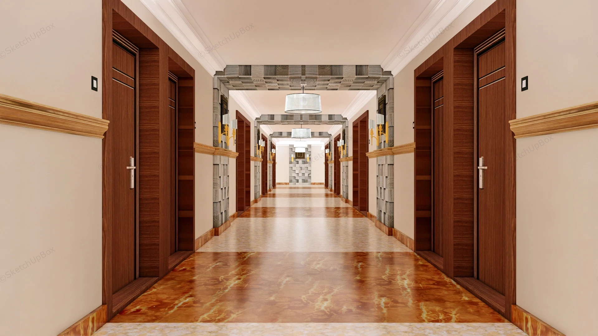 Hotel Corridor Design Hotel & Restaurant 435Hotel corridor design sketchup 3d model.DownloadEdges:601026Faces:260680File Version:SketchUp 8.skp File Size:8.47 MBTag Count:11Materials:33Render:NoneCorridorHotels
