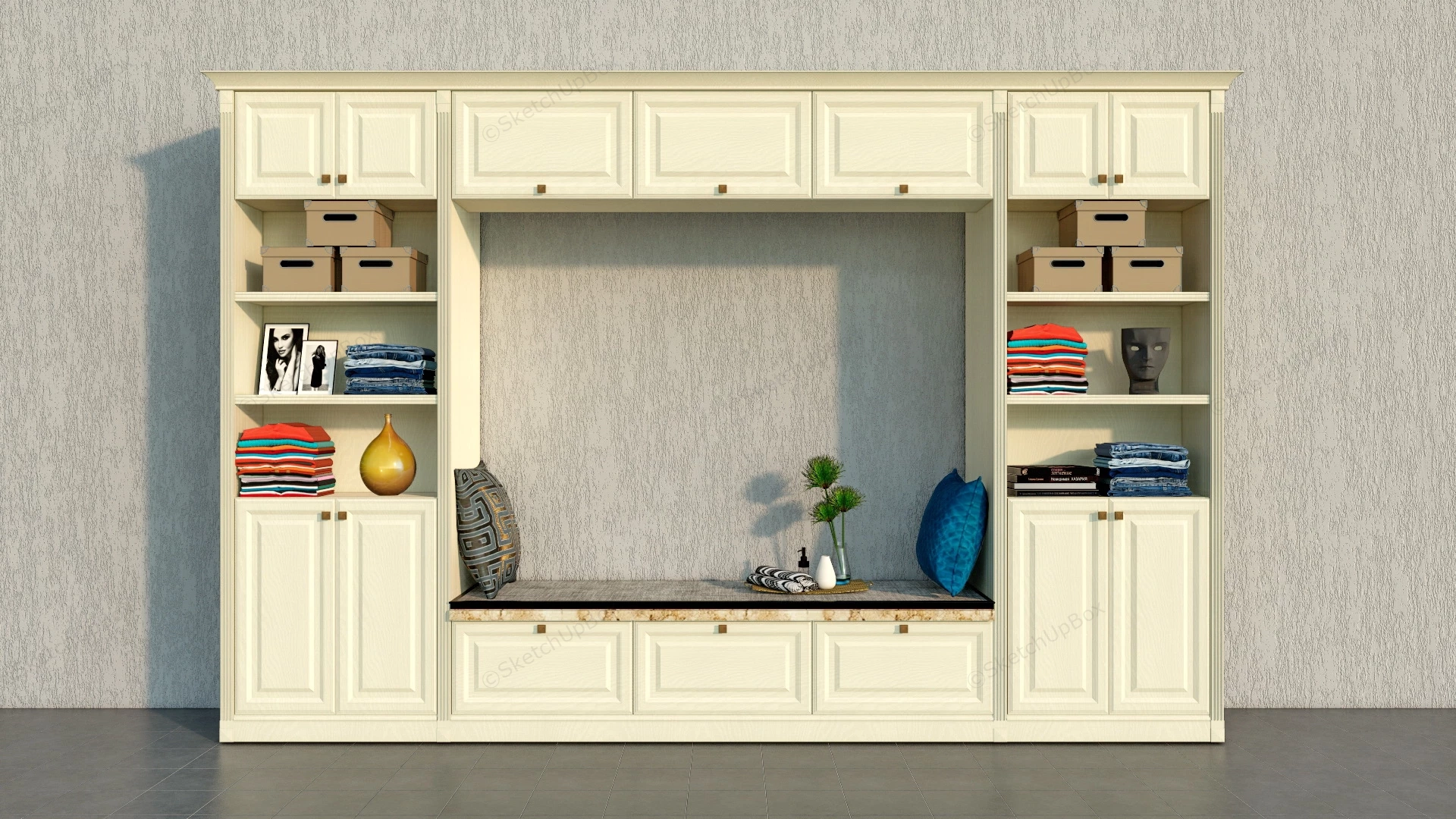 Mudroom Storage & Entryway Organization Furniture 1.03kMudroom & entryway organization storage cabient with bench sketchup 3d model.DownloadEdges:234484Faces:118844File Version:SketchUp 8.skp File Size:53.4 MBTag Count:2Materials:47Render:NoneEntrywayMudroom