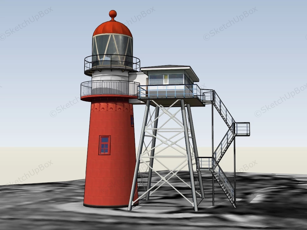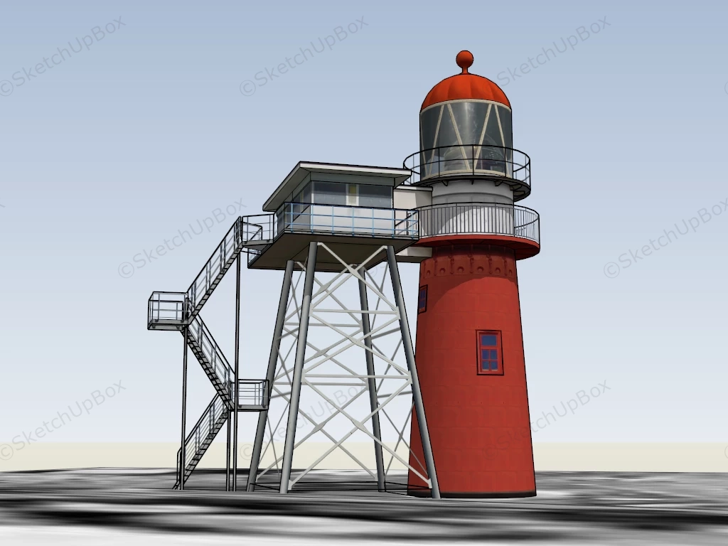 Red Lighthouse With Attached Stairs Architectural Elements 1.17kRed lighthouse with attached stairs sketchup 3d model.DownloadEdges:2901Faces:1125File Version:SketchUp 8.skp File Size:1.4 MBTag Count:3Materials:29Render:NoneLighthouse
