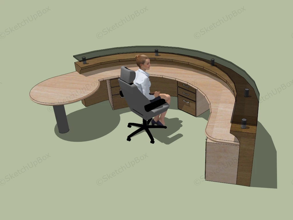 Curved Reception Counter Office Furniture 560Glass top curved reception desk counter sketchup 3d model.DownloadEdges:56027Faces:35208File Version:SketchUp 8.skp File Size:18.5 MBTag Count:5Materials:14Render:NoneReception Desks