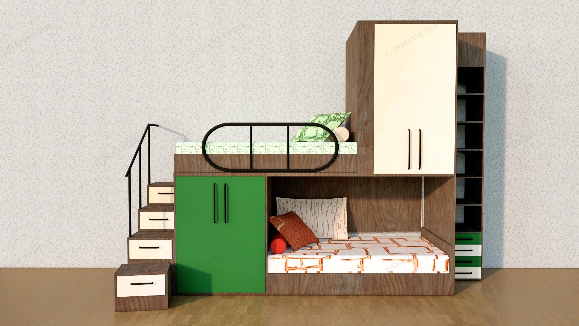 Bunk Bed With Storage For Kids Bedroom 628Bunk bed with storage for kids sketchup 3d model.DownloadEdges:8756Faces:4380File Version:SketchUp 8.skp File Size:1.45 MBTag Count:2Materials:21Render:NoneBedsKids Room