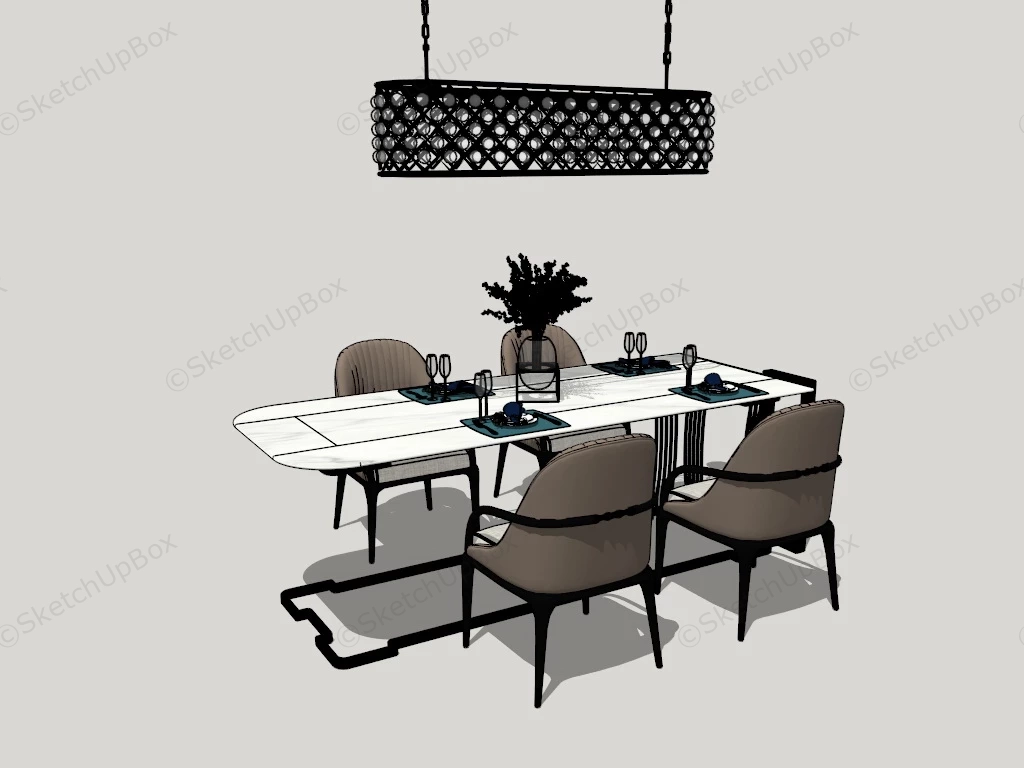 Industrial Chic Dining Set Furniture 1.03k5 Piece industrial style dining set and pendant light sketchup 3d model.DownloadEdges:402722Faces:238558File Version:SketchUp 8.skp File Size:22.9 MBTag Count:1Materials:16Render:NoneDining Room FurnitureDining Room Sets