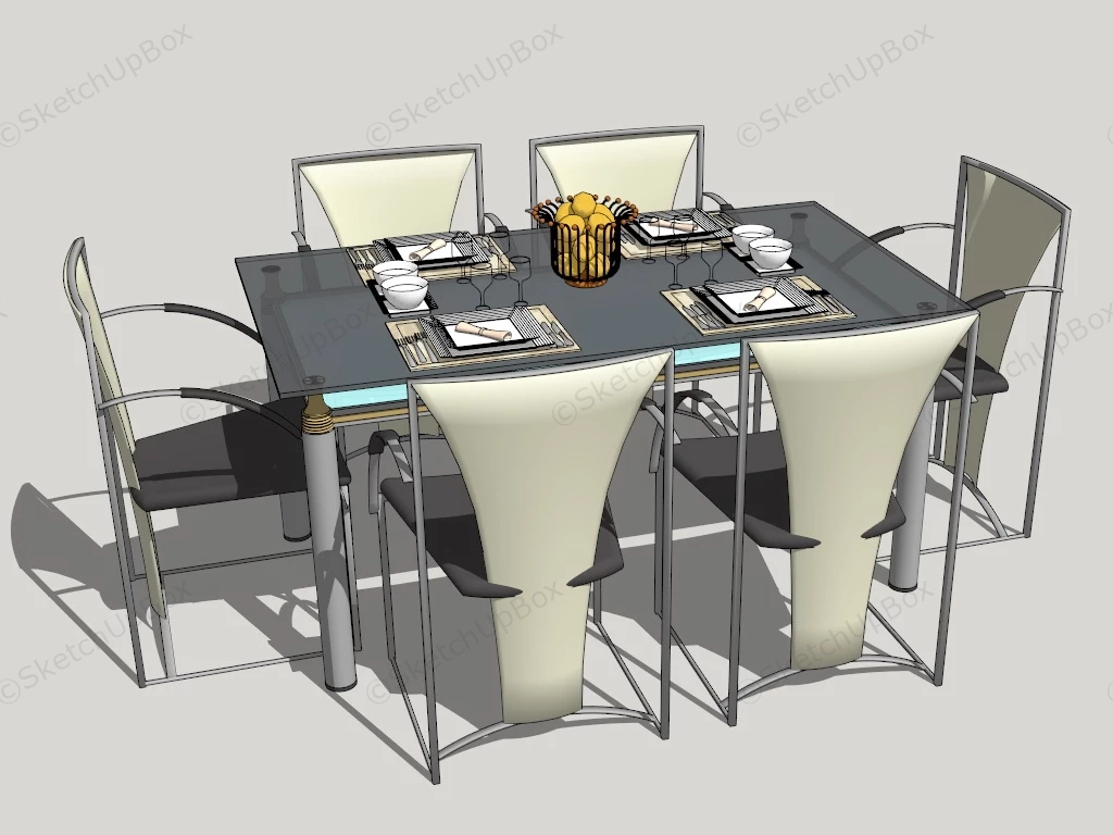 Glass Dining Table Set Furniture 9447-Piece rectangular glass dining table set sketchup 3d model.DownloadEdges:122646Faces:72740File Version:SketchUp 8.skp File Size:11.2 MBTag Count:2Materials:23Render:NoneDining Room FurnitureDining Room Sets