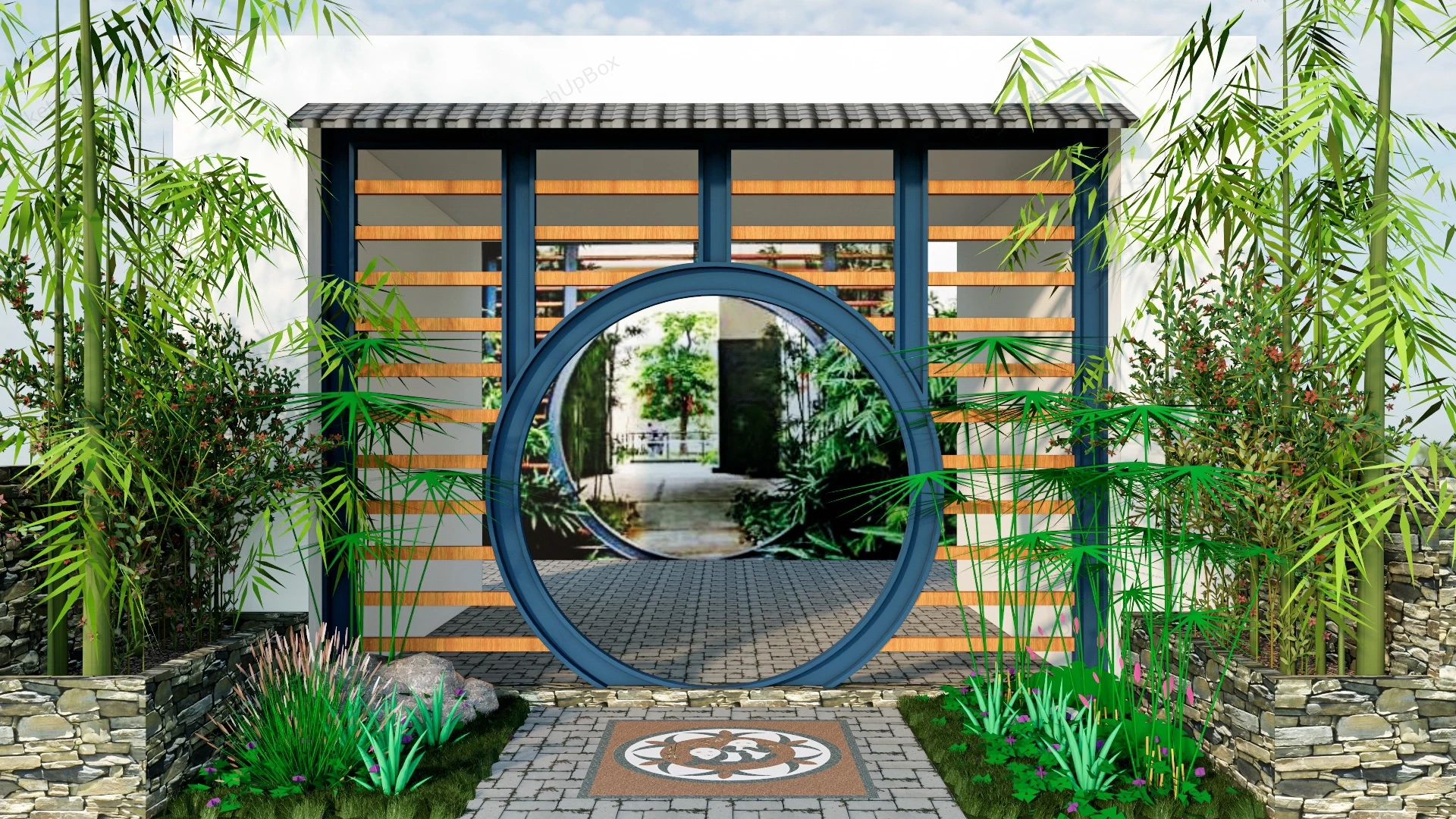 Chinese Garden Round Door Garden Design 1.27kDoorway in Chinese garden sketchup 3d model.DownloadEdges:1067404Faces:603771File Version:SketchUp 8.skp File Size:14.9 MBTag Count:3Materials:44Render:NoneDoorsGarden Ideas