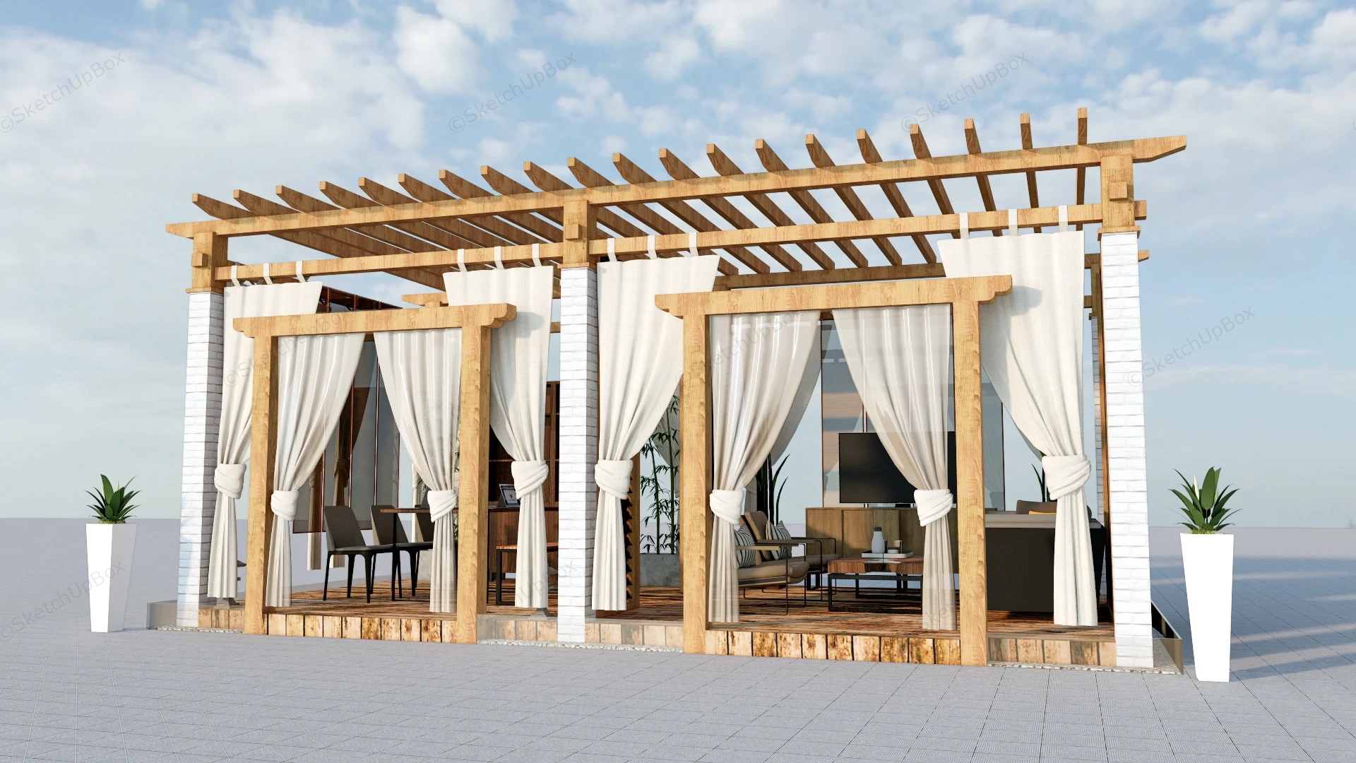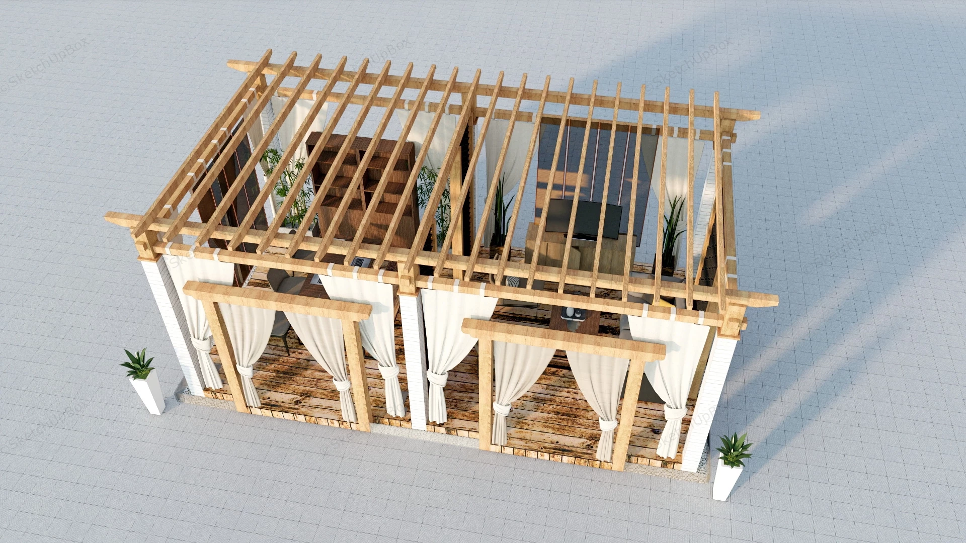 Wood Pergola With Patio Set Outdoor Furniture 1.24kWood pergola with patio set sketchup 3d model.VIP onlyOnly VIP downloadUpgrade VIPBuy nowEdges:417717Faces:202501File Version:SketchUp 8.skp File Size:17.5 MBTag Count:7Materials:76Render:NonePatio IdeasPatio SetPergolas