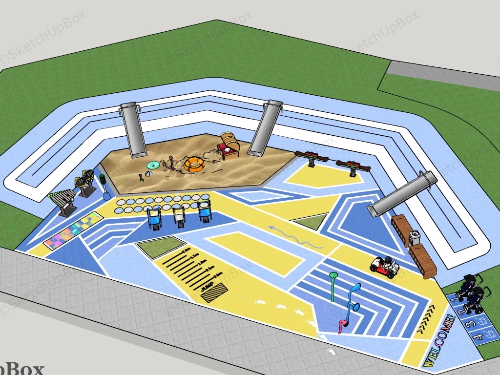 Small Toddler Playground Playground 1.42kSmall toddler playground sketchup 3d model.DownloadEdges:490810Faces:247903File Version:SketchUp 8.skp File Size:40.5 MBTag Count:5Materials:148Render:NoneKids Playground