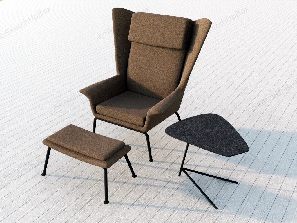 Wingback Chair With Footstool Furniture 1.03kWingback chair with footstool and side table sketchup 3d model.DownloadEdges:34610Faces:21812File Version:SketchUp 8.skp File Size:5.21 MBTag Count:1Materials:4Render:NoneArmchairOttoman