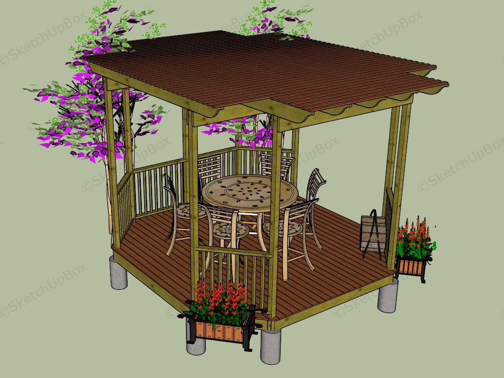 Pavilion With Dining Set Architectural Elements 1.04kPavilion with dining set sketchup 3d model.DownloadEdges:145984Faces:58025File Version:SketchUp 8.skp File Size:4.04 MBTag Count:3Materials:32Render:NonePavilions