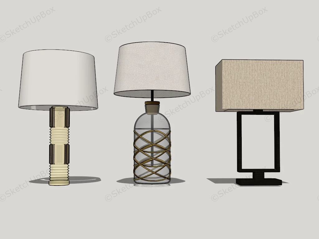 Modern Table Lamps Lighting 1.12kModern table lamps sketchup 3d model.DownloadEdges:59686Faces:32038File Version:SketchUp 8.skp File Size:4.63 MBTag Count:2Materials:12Render:NoneTable Lamps