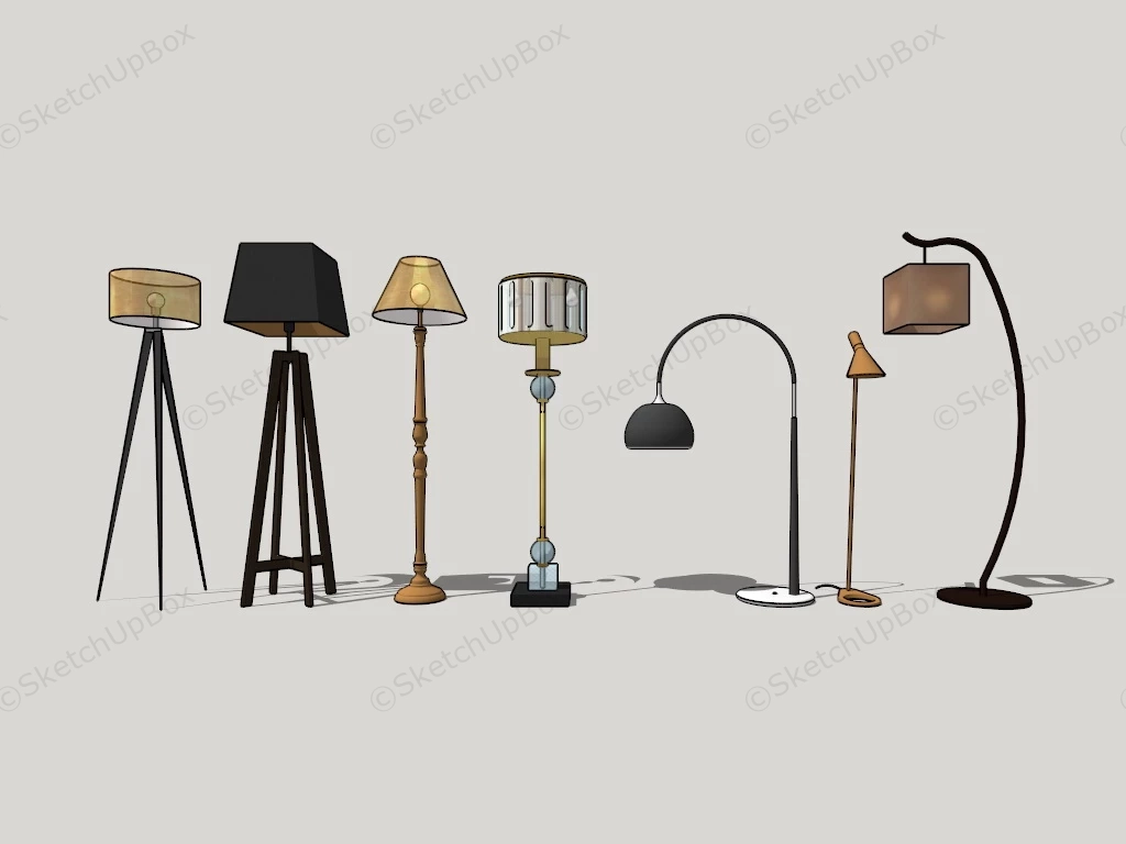 Floor Lamp Collection Lighting 1.35kCollection of floor lamps sketchup 3d model.DownloadEdges:37063Faces:16159File Version:SketchUp 8.skp File Size:6.94 MBTag Count:2Materials:32Render:NoneFloor Lamps