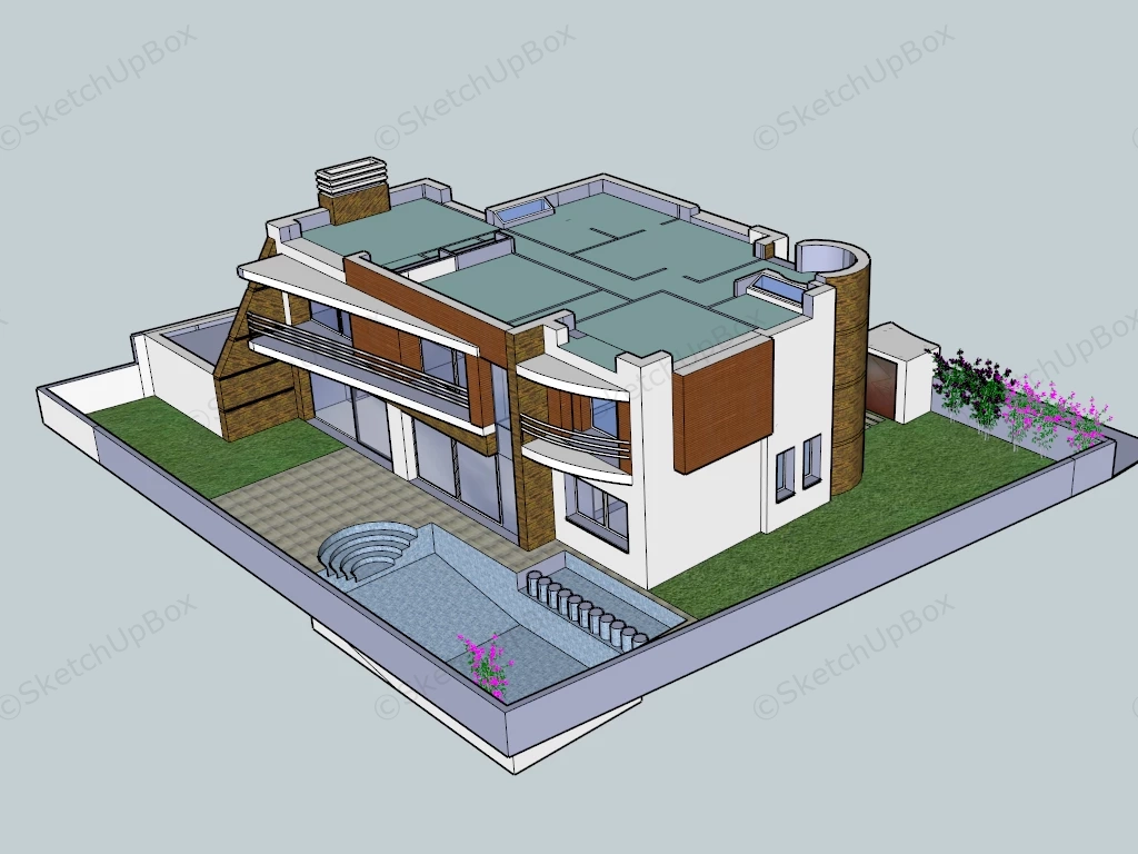 Modern House With Swimming Pool Residential Buildings 383Modern house with garage and swimming pool sketchup 3d model.DownloadEdges:146684Faces:24969File Version:SketchUp 8.skp File Size:4.37 MBTag Count:1Materials:21Render:NoneHouses
