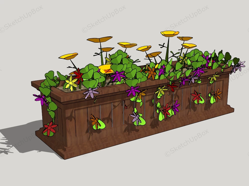 Rectangular Raised Garden Bed Plants 1.24k Rectangular wood raised garden bed planter box sketchup 3d model.DownloadEdges:28997Faces:10660File Version:SketchUp 8.skp File Size:749 KBTag Count:1Materials:15Render:NonePlanter BoxRaised Garden Bed