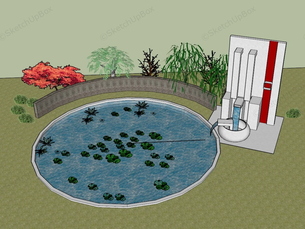 Round Pond With Lotus Plant Garden Design 1.08kRound garden pond with lotus plant water feature sketchup 3d model.DownloadEdges:87973Faces:28591File Version:SketchUp 8.skp File Size:2.83 MBTag Count:6Materials:22Render:NonePondsWater Feature