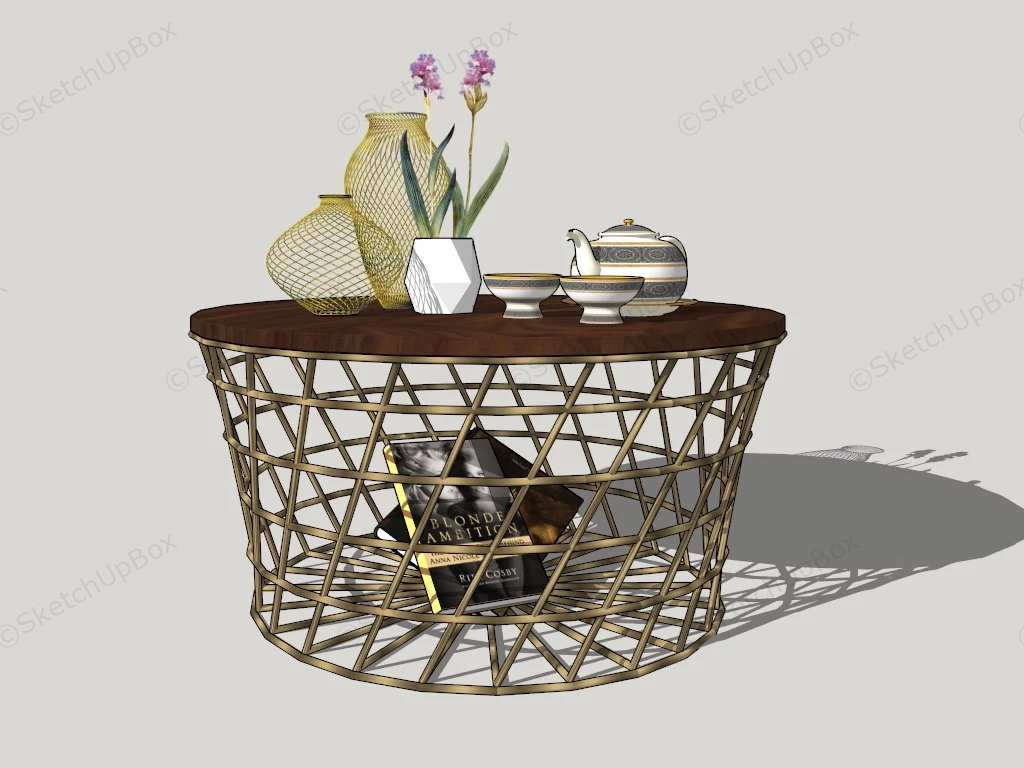 Round Coffee Table Furniture 1.11kMid century modern brass and wood round coffee table sketchup 3d model.DownloadEdges:102610Faces:55104File Version:SketchUp 8.skp File Size:9.64 MBTag Count:1Materials:19Render:NoneCoffee TableLiving Room Furniture