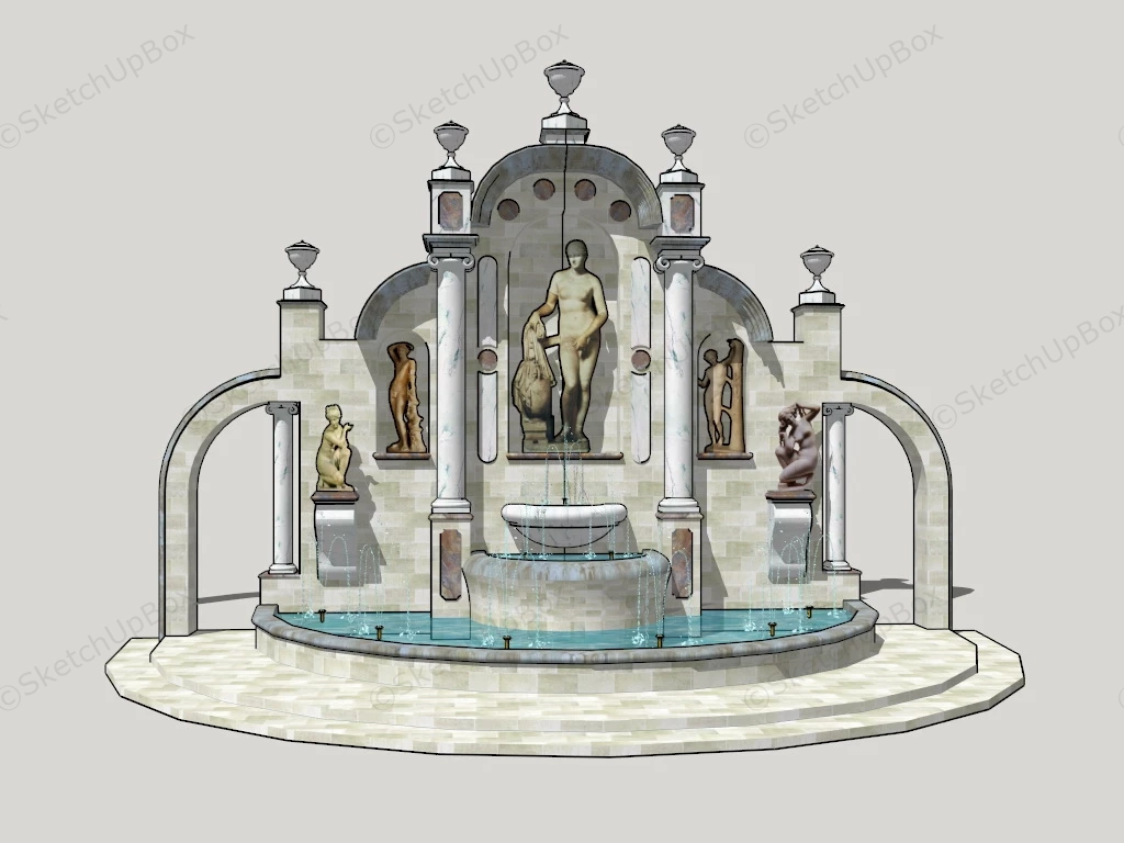 Roman Wall Fountain Garden Design 663Roman wall fountain sketchup 3d model.DownloadEdges:107424Faces:41501File Version:SketchUp 8.skp File Size:2.6 MBTag Count:1Materials:13Render:NoneFountains