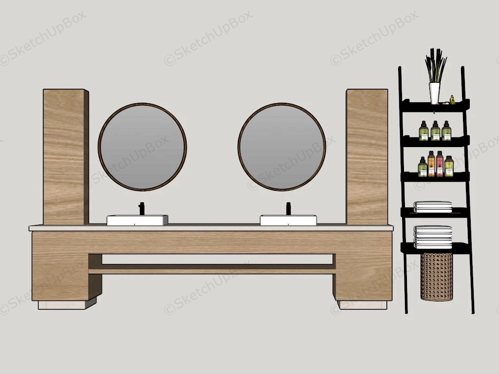 Wood Bathroom Vanity And Shelf Bathroom 468Double sink wood bathroom vanity and shelf sketchup 3d model.DownloadEdges:544026Faces:280707File Version:SketchUp 8.skp File Size:16.1 MBTag Count:2Materials:42Render:NoneBathroom Vanity